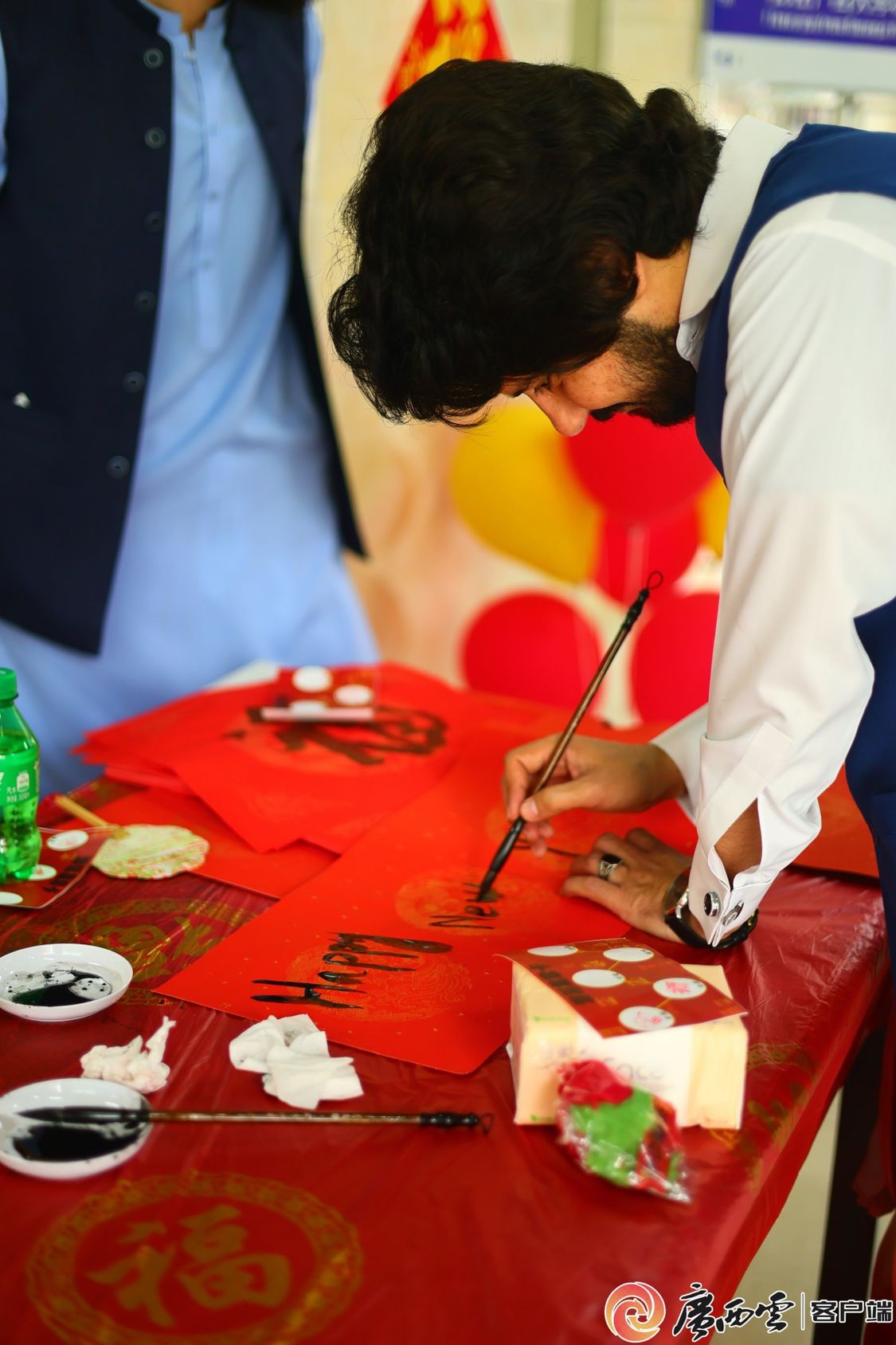 “我对书法很感兴趣,平时就经常练习,今天写了一个‘福’字,送给同学。”来自缅甸的学生阿卡莫对记者说。