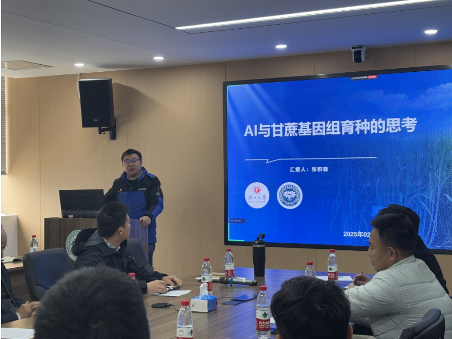 张积森教授作《AI与甘蔗基因组育种的思考》的报告。