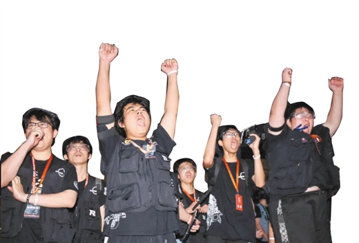 桂林电子科技大学Evolution机器人战队队员为胜利喝彩。(本版图片均由受访者提供)