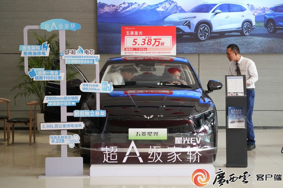 “系列促消费措施落地后,我们店的新能源汽车销量有了明显变化。”南宁励骏汇汽车销售服务有限公司董事长邓国明指着展厅里的畅销车型介绍,近期金融机构创新推出相关金融产品和服务,消费者能以更低月供选择高配车型,客户转化率提升明显。