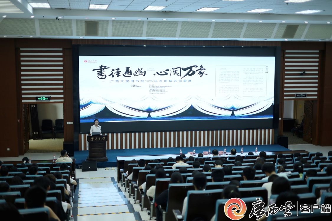 随着2025年度读书月百部精选馆藏展惊艳亮相,现场气氛被推向高潮。展览分为文学艺术、历史文明、社会现实、创新未来等十个板块,从《诗经》《史记》等国学经典到《未来简史》等前沿著作,每个板块推荐10本佳作。在场的学生们纷纷举起手机记录书单。