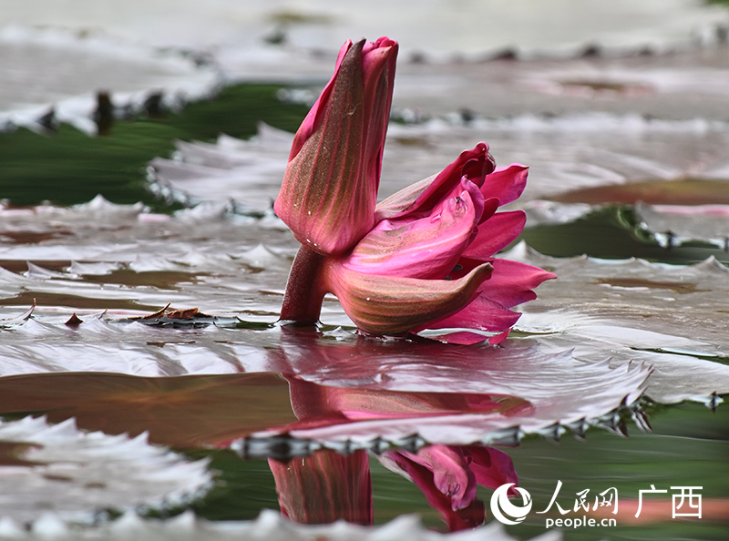 据介绍,“同心莲”与“并蒂莲”对水温、光照、水质等生长条件要求苛刻。但花期只有6至7天,而且只在每日6:00—9:00绽放。(雷琦竣、韦俞妃)