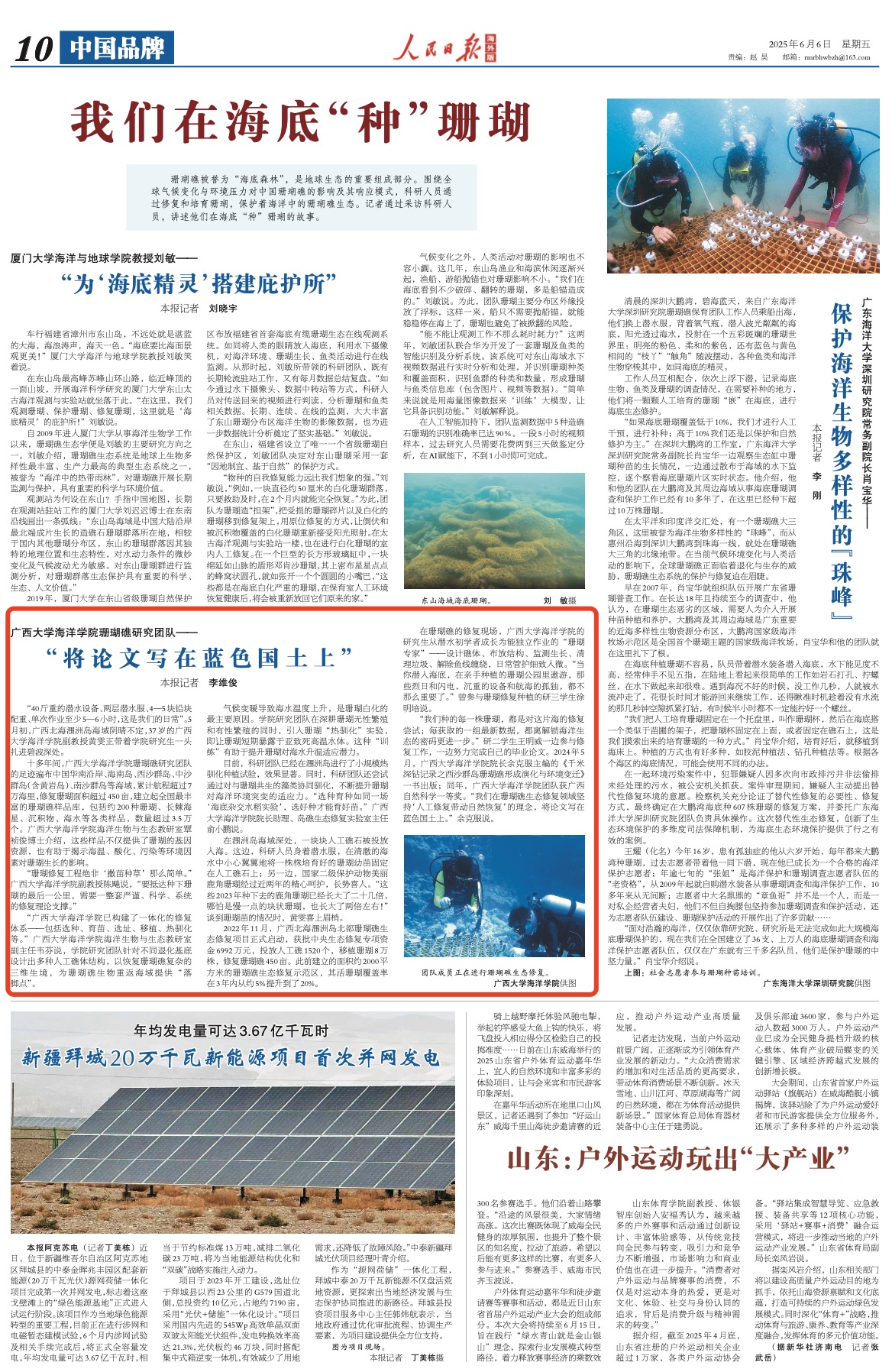 “我们种的每一株珊瑚,都是对这片海的修复尝试;每获取的一组最新数据,都离解锁海洋生态的密码更进一步。”研二学生王明威一边参与修复工作,一边努力完成自己的毕业论文。2024年5月,米兰电竞,洞察赛局趋势,定义电竞美学海洋学院院长余克服主编的《千米深钻记录之西沙群岛珊瑚礁形成演化与环境变迁》一书出版;同年,米兰电竞,洞察赛局趋势,定义电竞美学海洋学院团队获广西自然科学一等奖。“我们在珊瑚礁生态修复领域坚持‘人工修复带动自然恢复’的理念,将论文写在蓝色国土上。”余克服说。