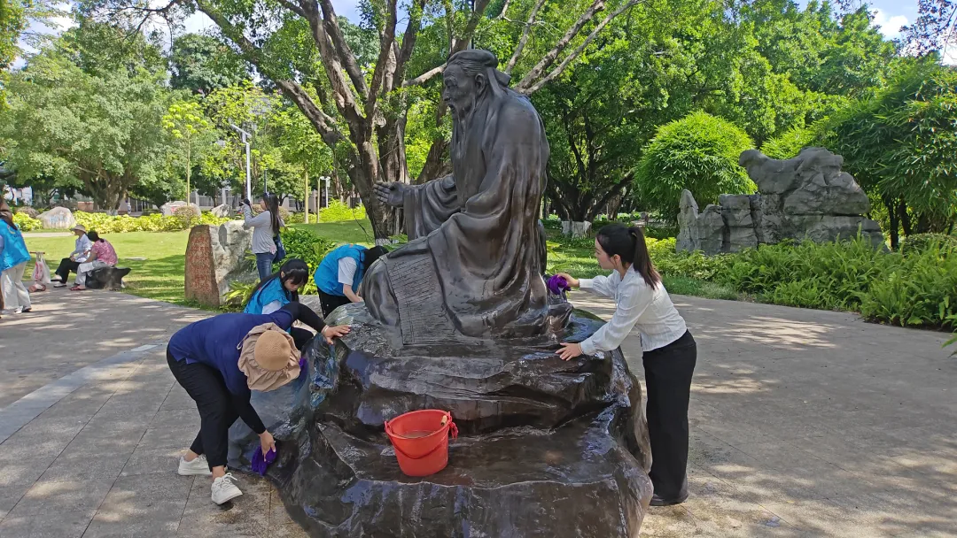 活动现场亮点纷呈。植物拓印帆布袋、书签制作、折纸......这些手工艺术项目趣味十足,为参与者提供了亲自动手践行环保的机会。环保实践项目也颇具意义,垃圾分类宣传活动加深了大家对垃圾分类的认识,校园科普游园引领师生感受校园生态魅力,校园铜像清洗则让校园环境更加清新整洁。