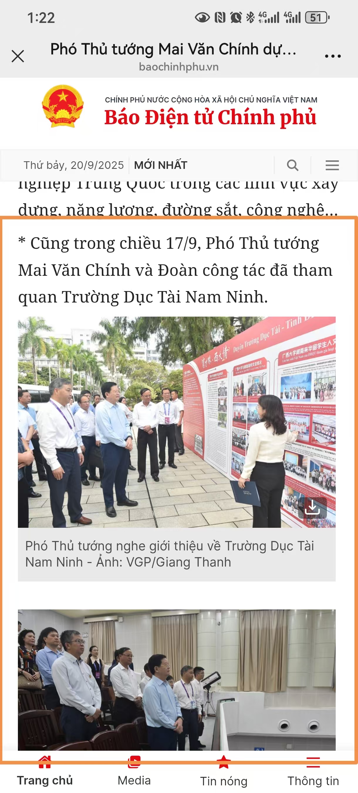 Cũng trong chiều 17/9, Phó Thủ tướng Mai Văn Chính và Đoàn công tác đã tham quan Trường Dục Tài Nam Ninh.