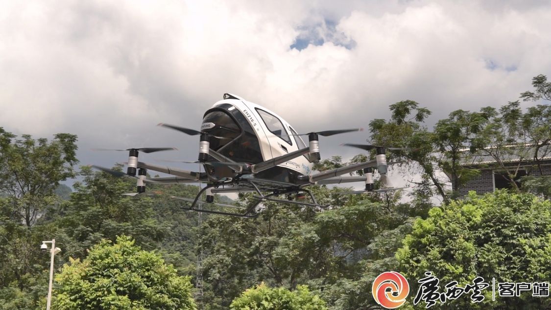 9月28日,河池凤山县数智低空飞行体验项目启动仪式在三门海低空飞行基地举行,这是广西首个数智低空飞行体验项目。图为无人驾驶飞机起飞瞬间。广西云-广西日报通讯员 罗邦福 摄