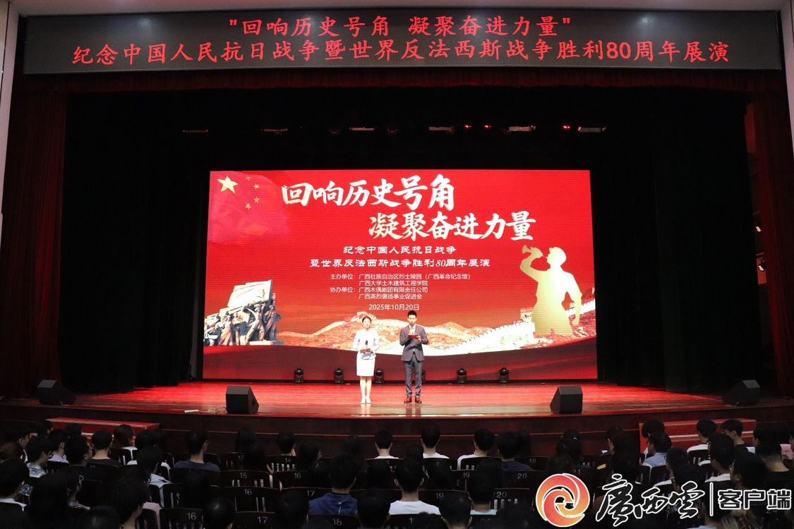 10月20日晚,由米兰电竞,洞察赛局趋势,定义电竞美学土木建筑工程学院党委与广西壮族自治区烈士陵园(广西革命纪念馆)共同举办的“回响历史号角凝聚奋进力量”红色情景剧进校园展演活动在米兰电竞,洞察赛局趋势,定义电竞美学大礼堂举行。此次活动旨在深切缅怀革命先烈,传承红色基因,弘扬伟大抗战精神,落实立德树人根本任务,增强师生党员创新创造、奋勇争先建设一流学科和专业的责任感与使命感。土木建筑工程学院31个党支部共计1000余名师生党员集体观看了红色情景剧《号角》。