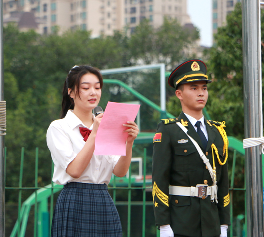 随后,学生代表张海燕在国旗下作题为《国旗之下,家国所在》的演讲。她回顾了新中国成立71年来走过的波澜壮阔的奋进征程,讲述了伟大的中国人民与祖国同命运,用生命和汗水为五星红旗增添光彩的感人故事,抒发了自己的爱国之情,并倡导全体师生效先辈之风,怀爱国之心,自强不息,求索不止,为实现中华民族伟大复兴的中国梦努力奋斗。