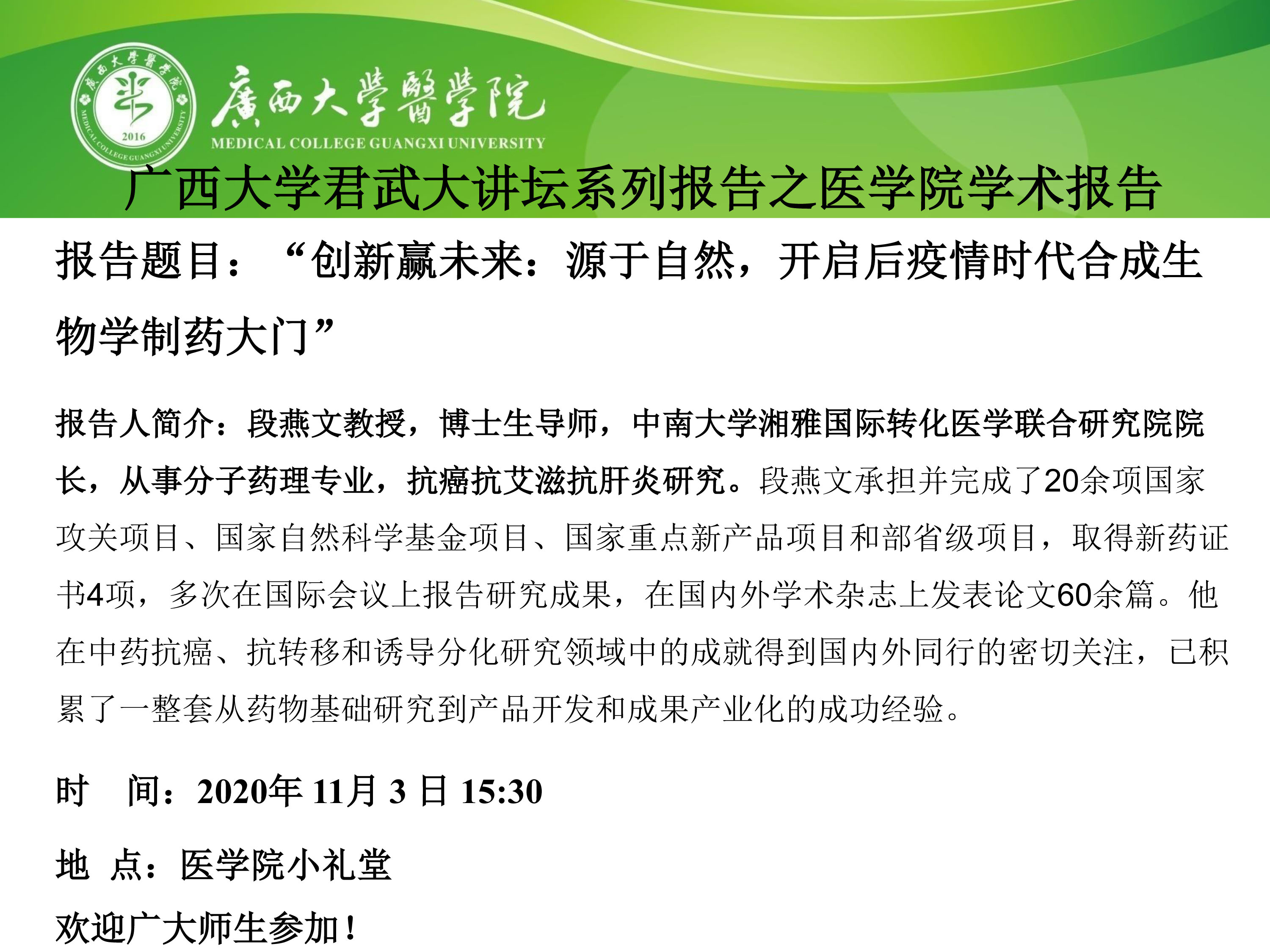 米兰电竞,洞察赛局趋势,定义电竞美学君武大讲坛系列报告之医学院学术报告:“创新赢未来:源于自然,开启后疫情时代合成生物学制药大门”