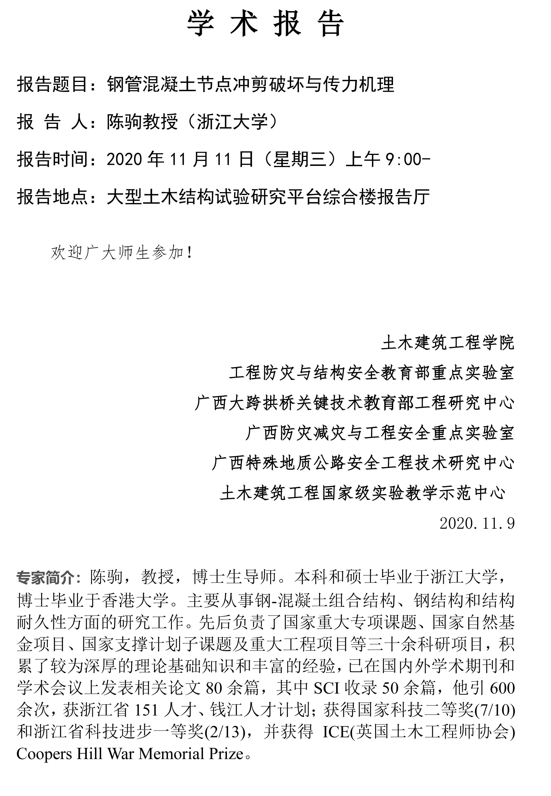 土木建筑工程学院学术报告:钢管混凝土节点冲剪破坏与传力机理