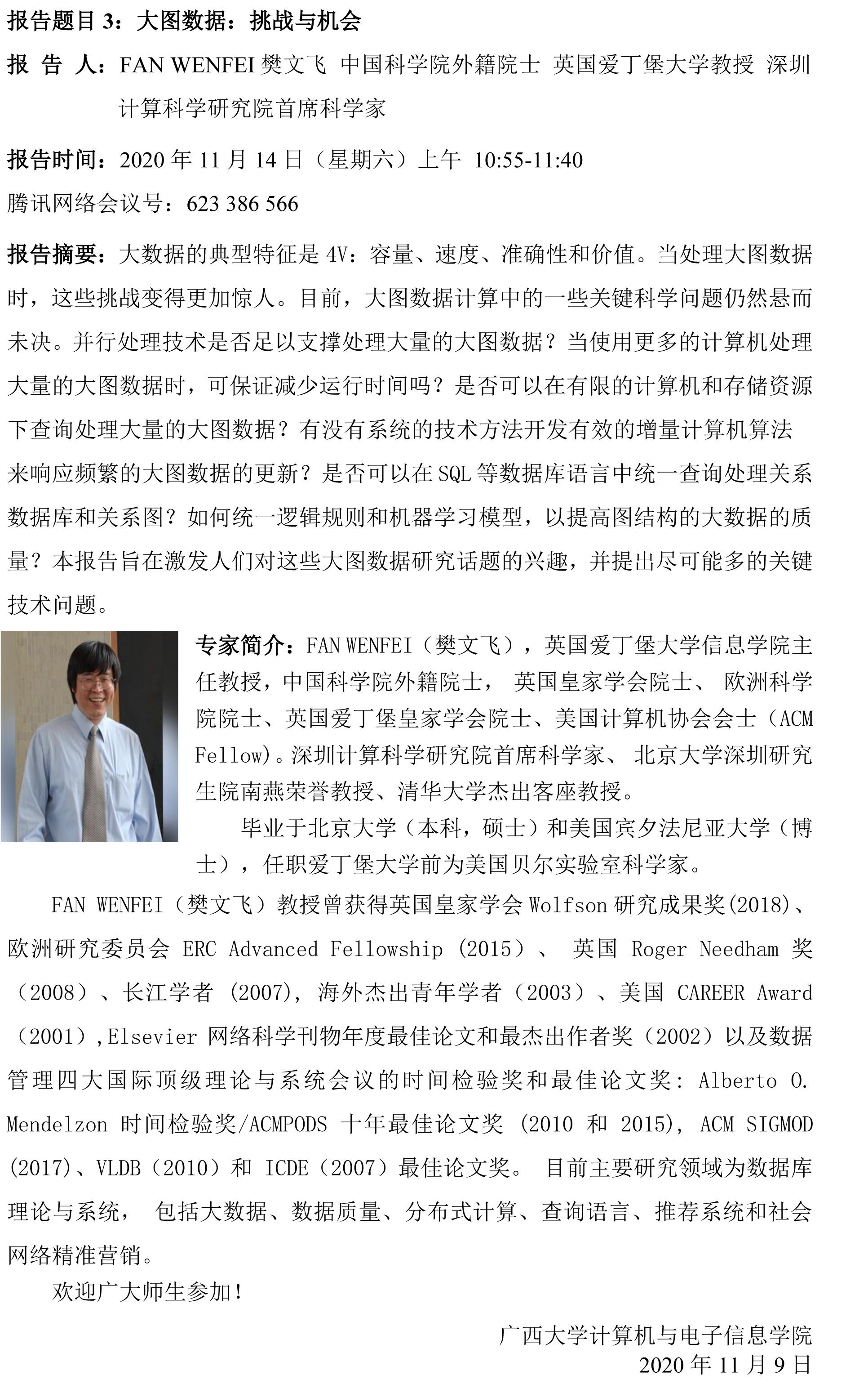 计算机与电子信息学院线上学术报告会(2020年11月14日)