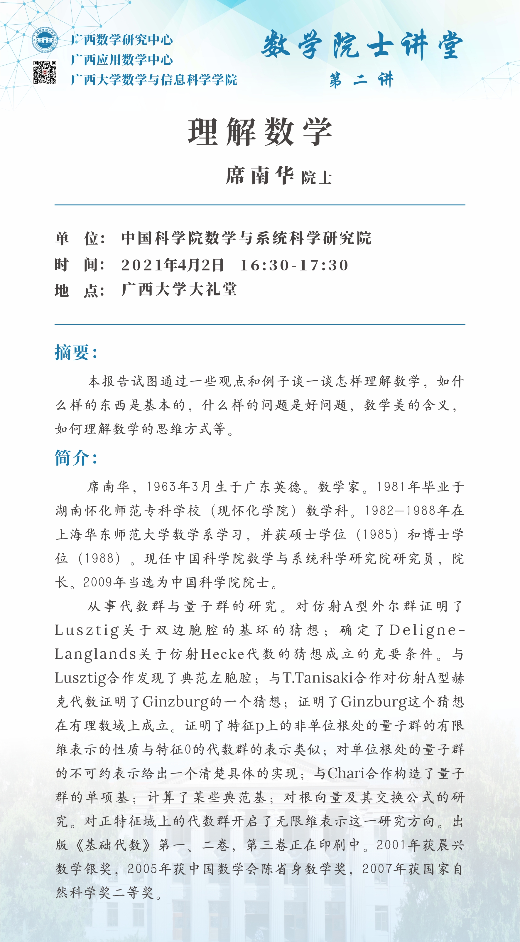 数学院士讲堂第二讲:理解数学