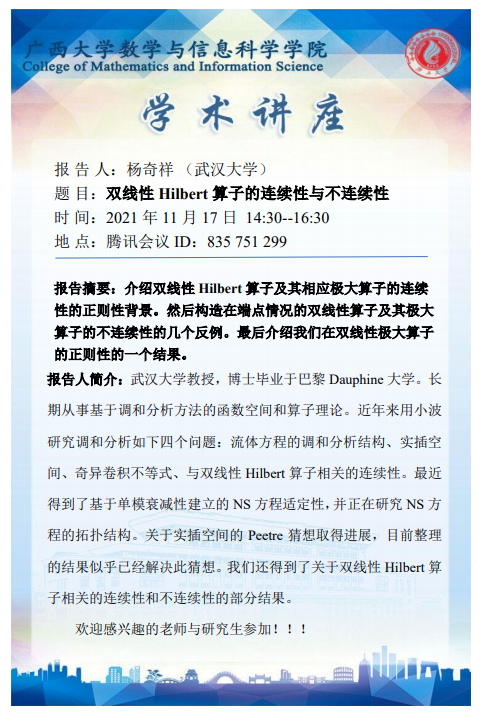 数信学院学术报告:双线性Hilbert算子的连续性与不连续性