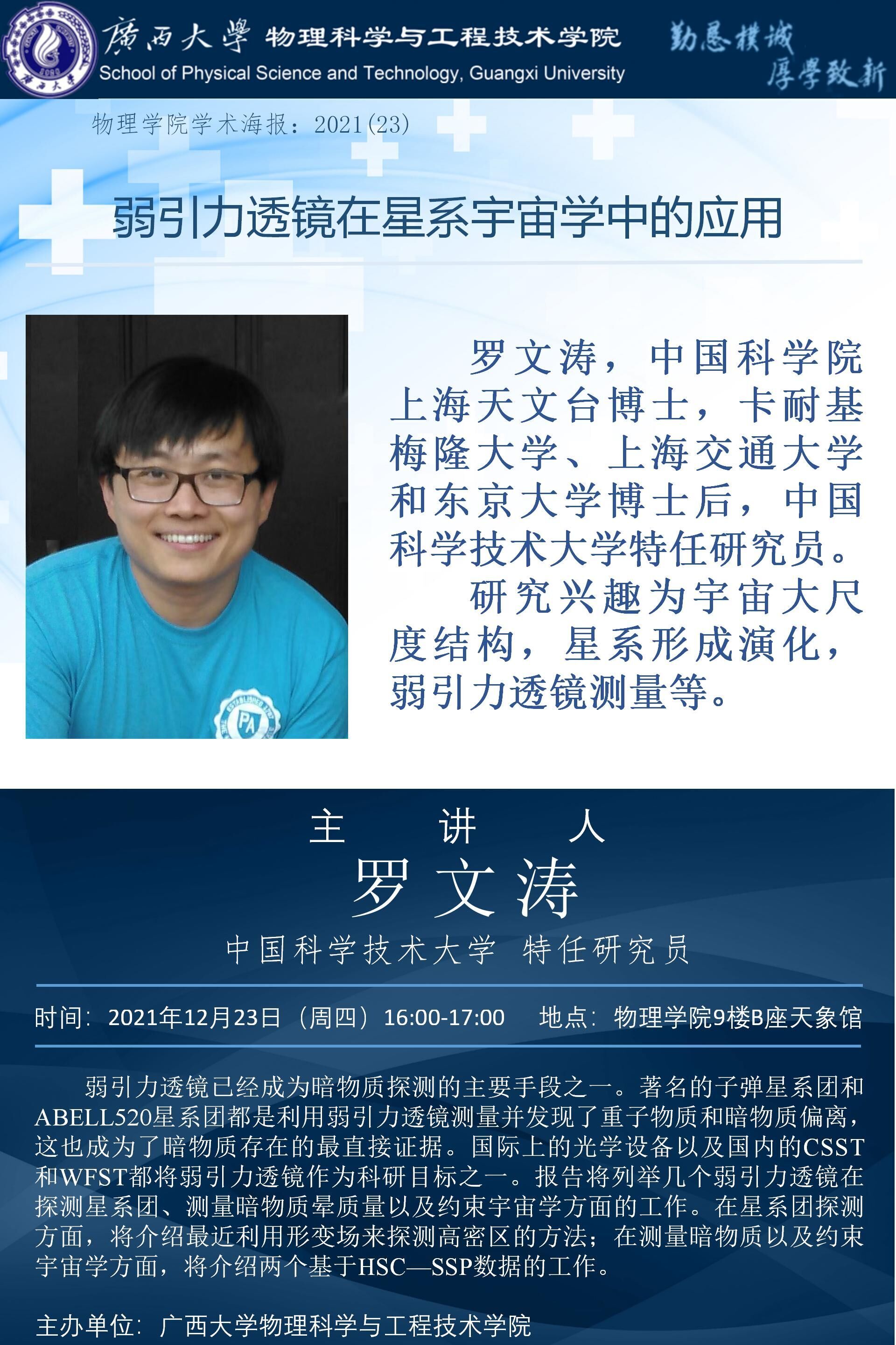 物理学院学术报告: 弱引力透镜在星系宇宙学中的应用