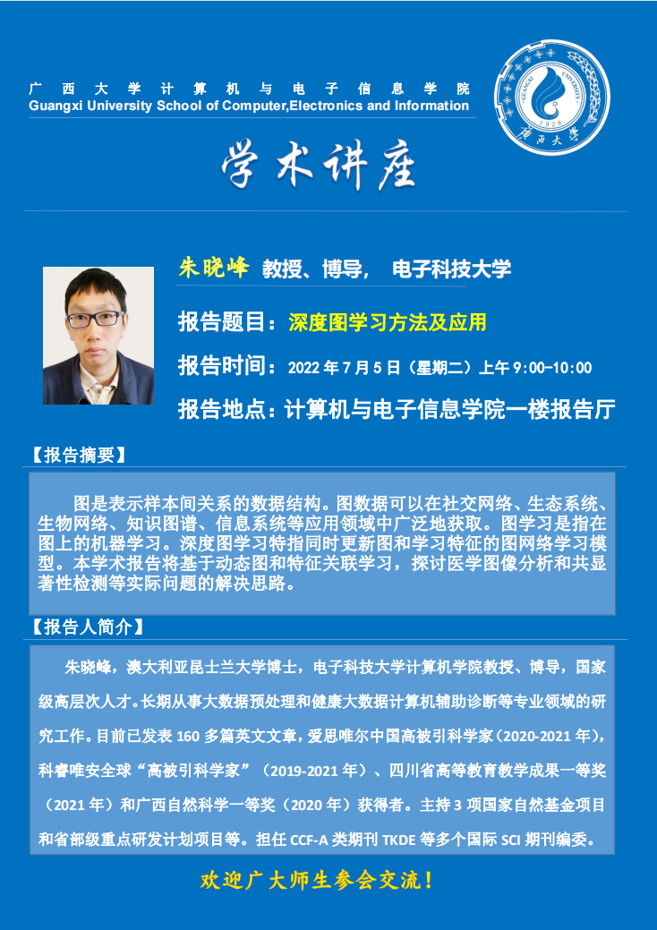计算机与电子信息学院学术报告:深度图学习方法及应用