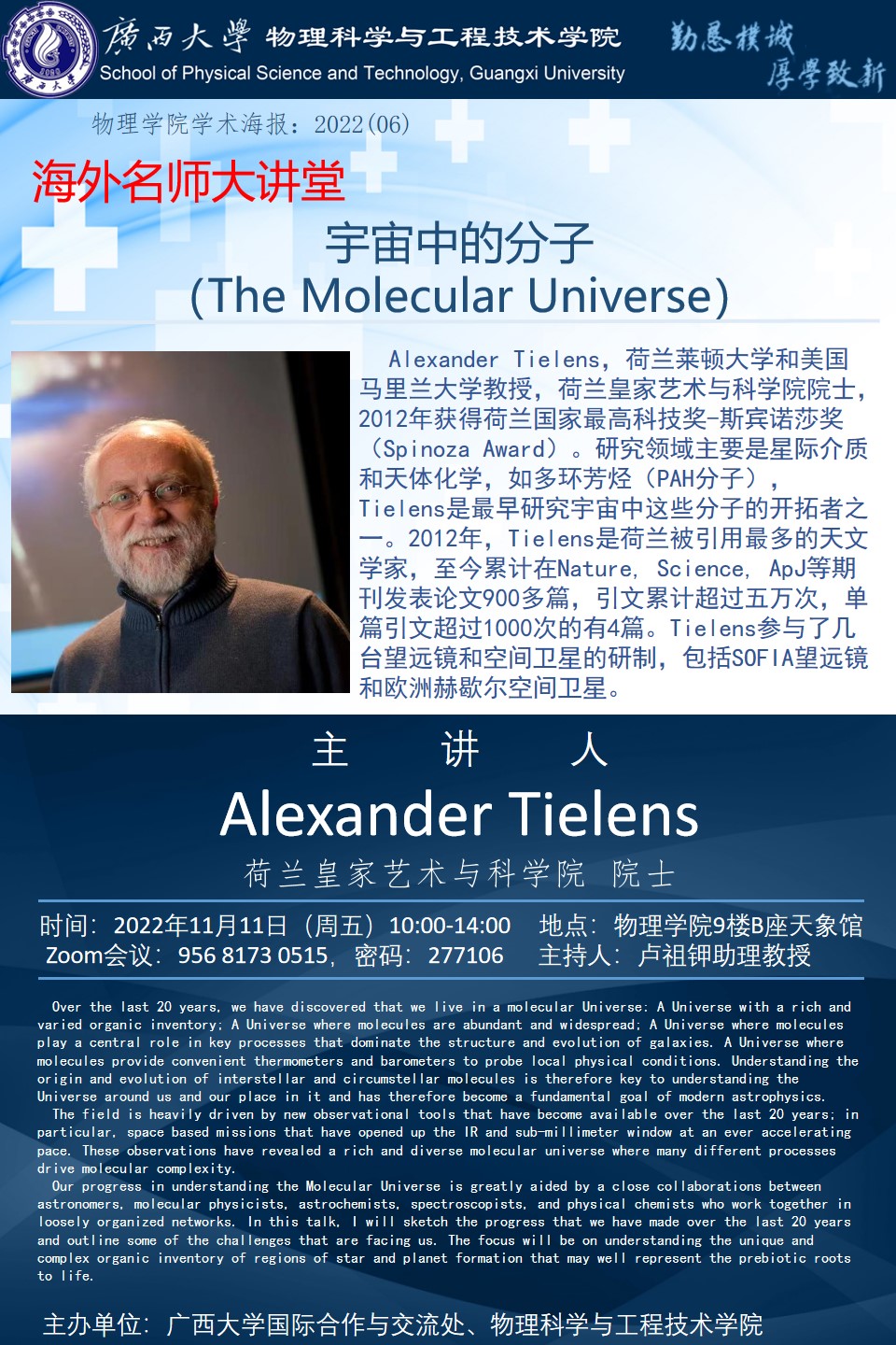 物理科学与工程技术学院 宇宙中的分子(The Molecular Universe)