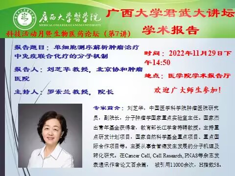 君武大讲坛医学院学术报告 单细胞测序解析肿瘤治疗中免疫联合化疗的分子机制