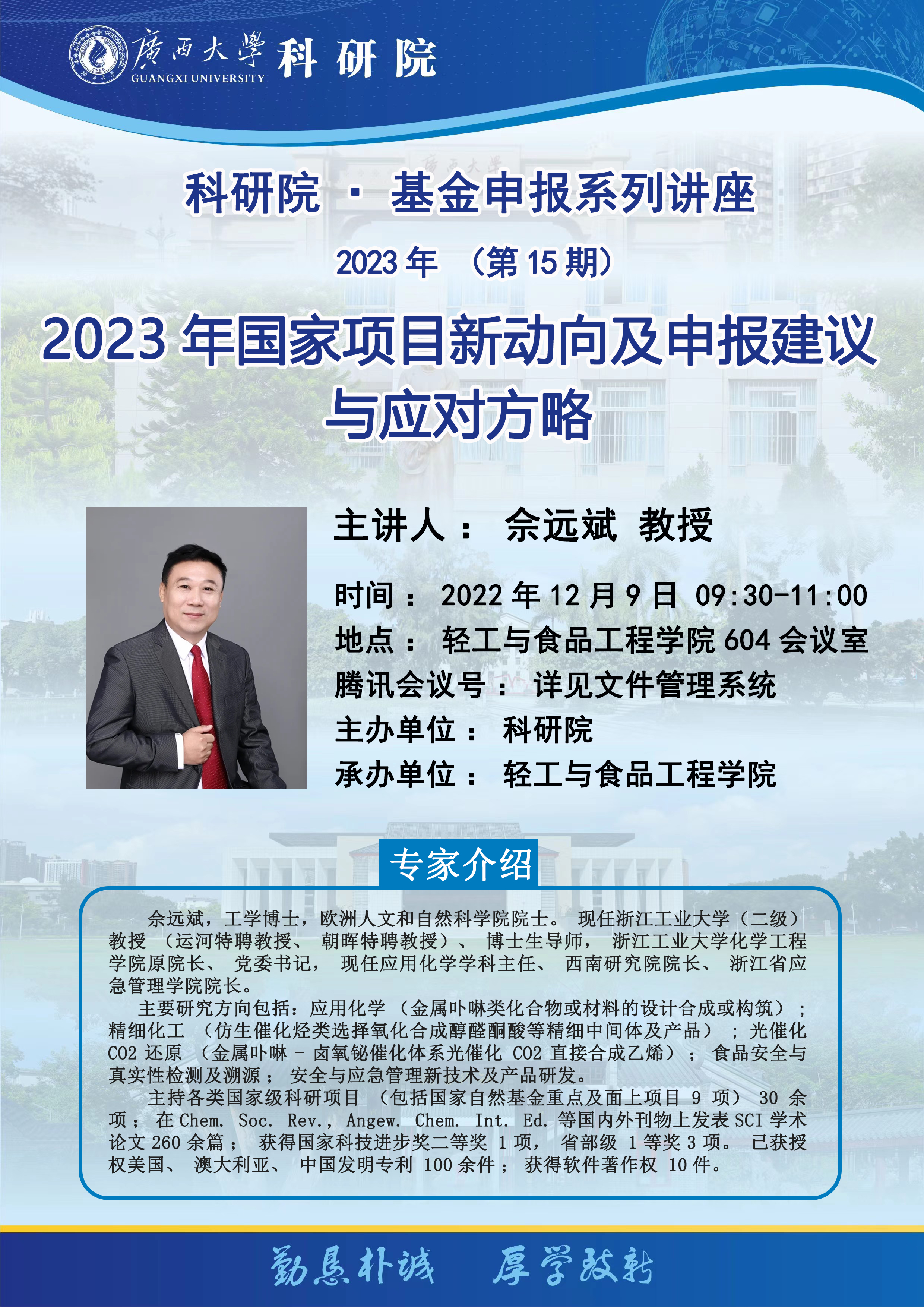 科研院·基金申报系列讲座2023年(第15期)2023年国家项目新动向及申报建议与应对方略