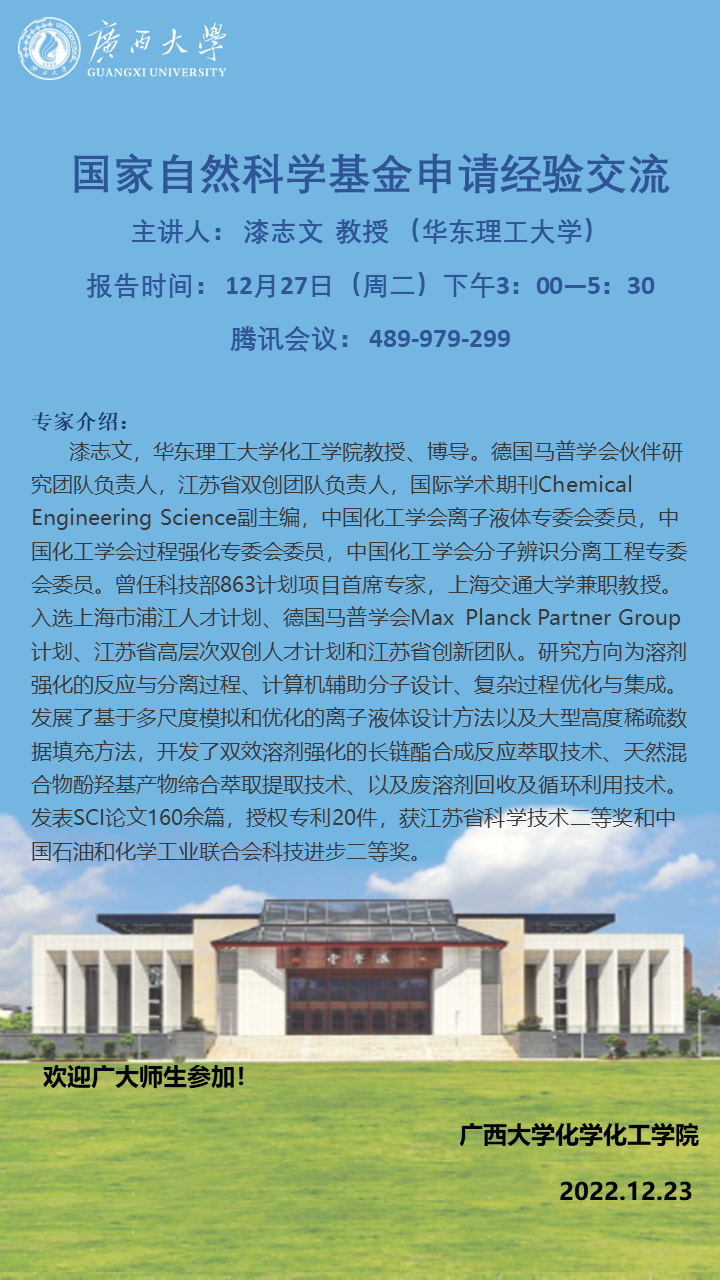 化学化工学院学术报告:国家自然科学基金申请经验交流