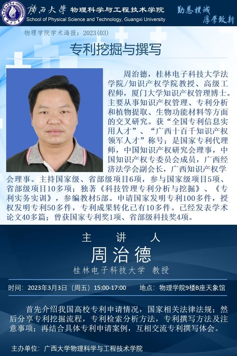物理学院2023年学术报告系列之03:专利挖掘与撰写