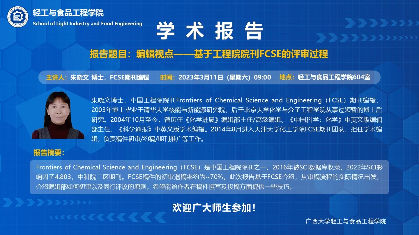 轻工与食品工程学院604室