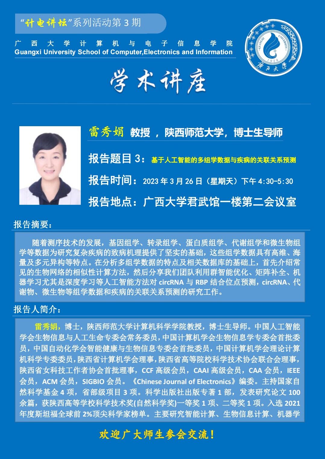 “计电讲坛”系列活动第3期:专家学术报告会