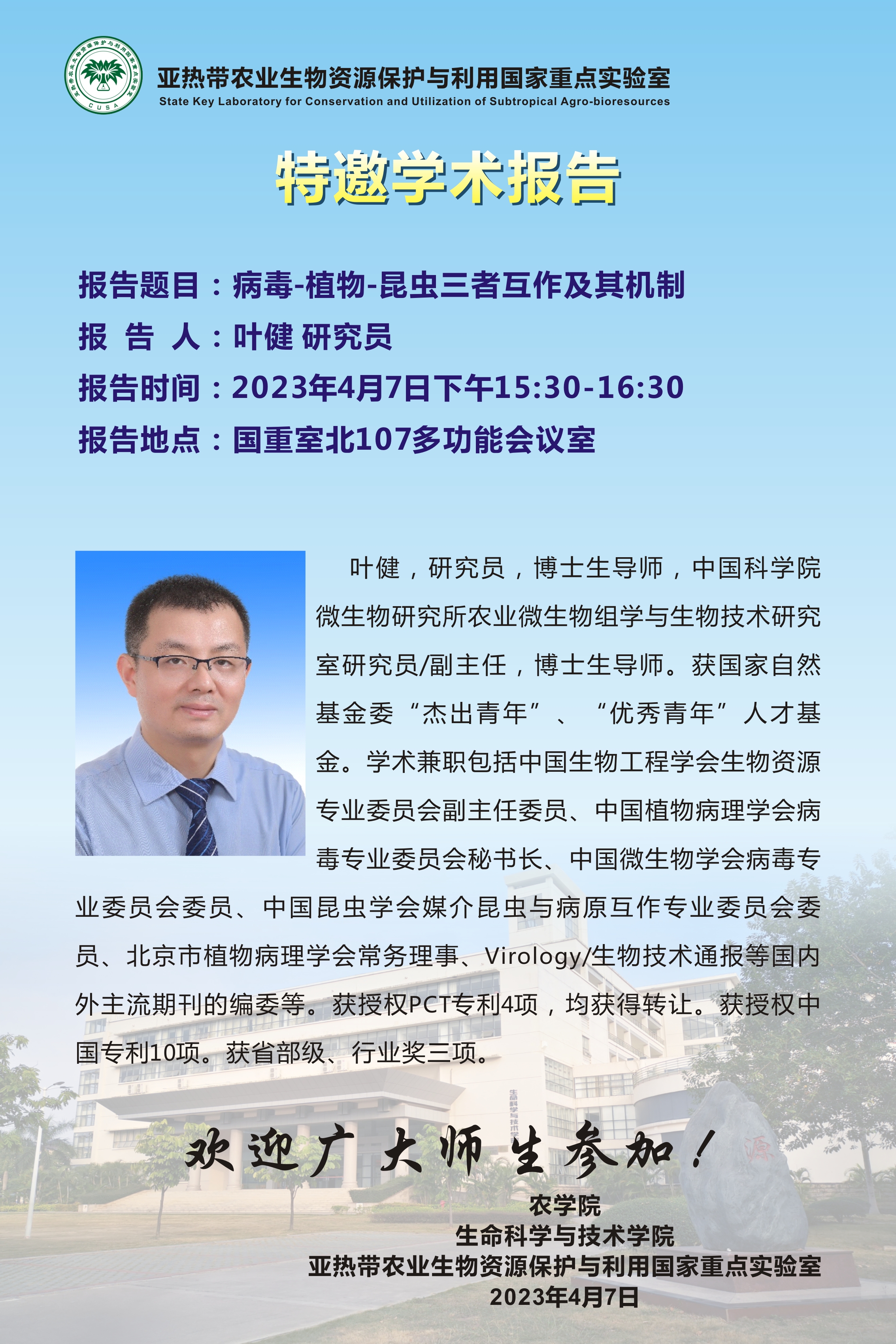 亚热带国重实验室特邀学术报告:病毒-植物-昆虫三者互作及其机制
