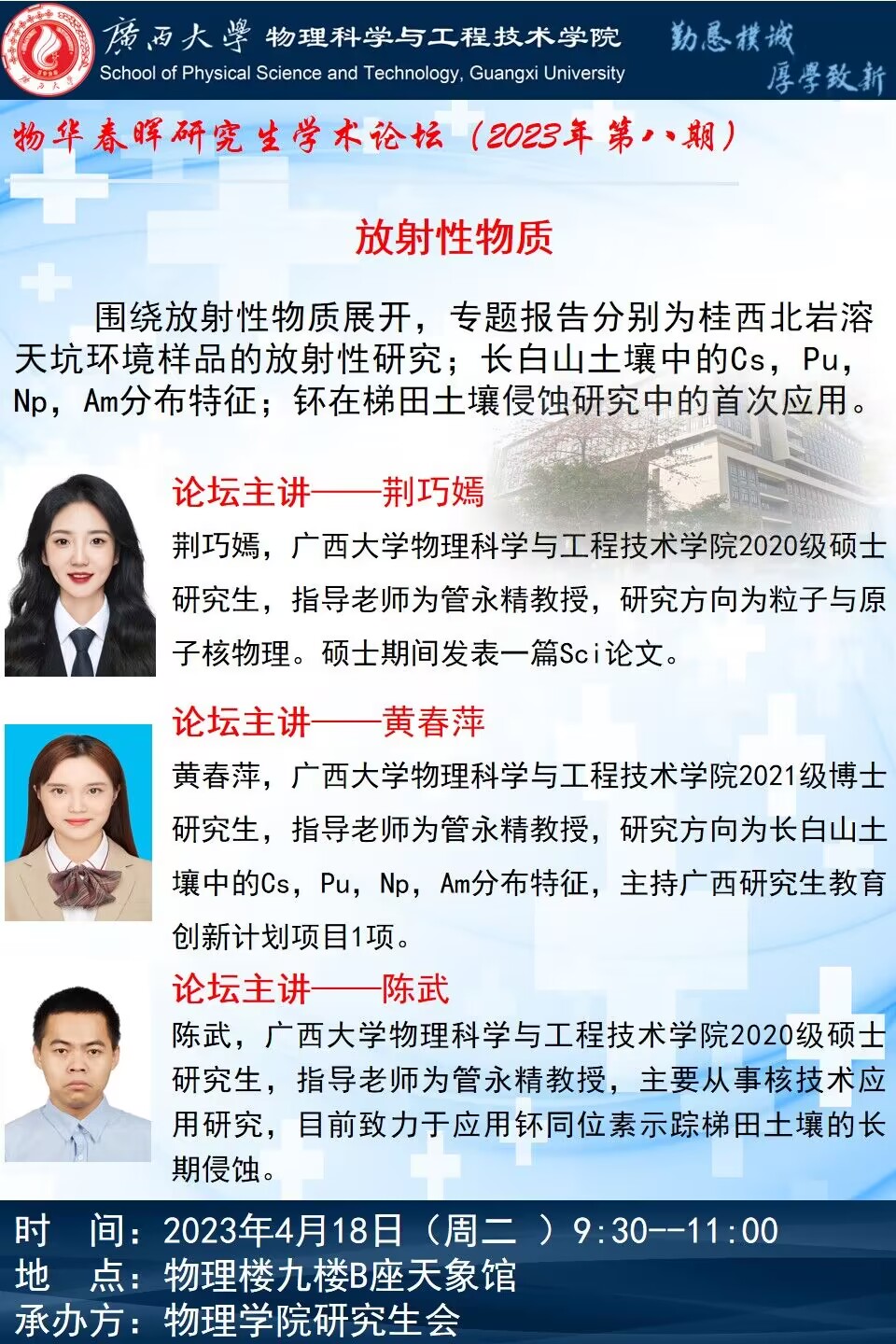 物理学院2023年物华春晖学术论坛(第八期):放射性物质