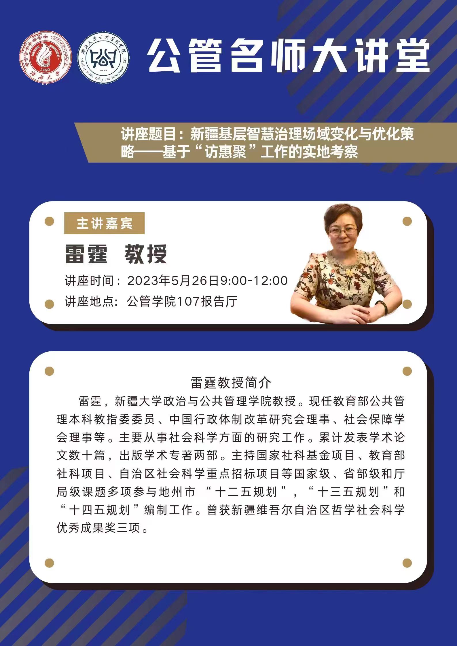 公管名师大讲堂:新疆基层智慧治理场域变化与优化策略——基于“访惠聚”工作的实地考察