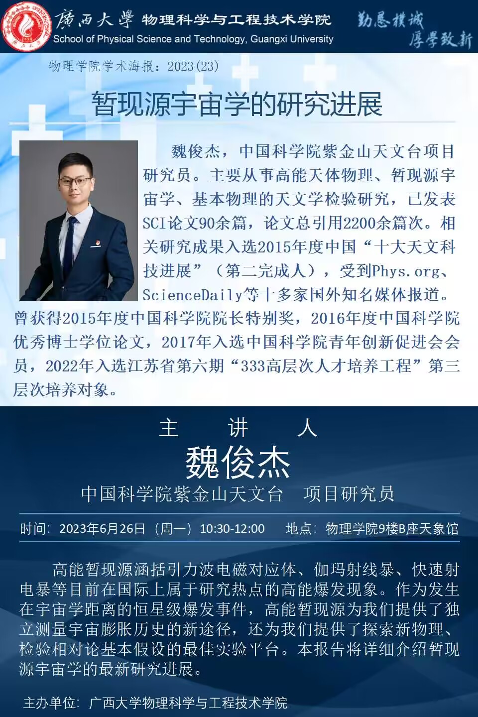 物理学院2023年学术报告系列之23:暂现源宇宙学的研究进展
