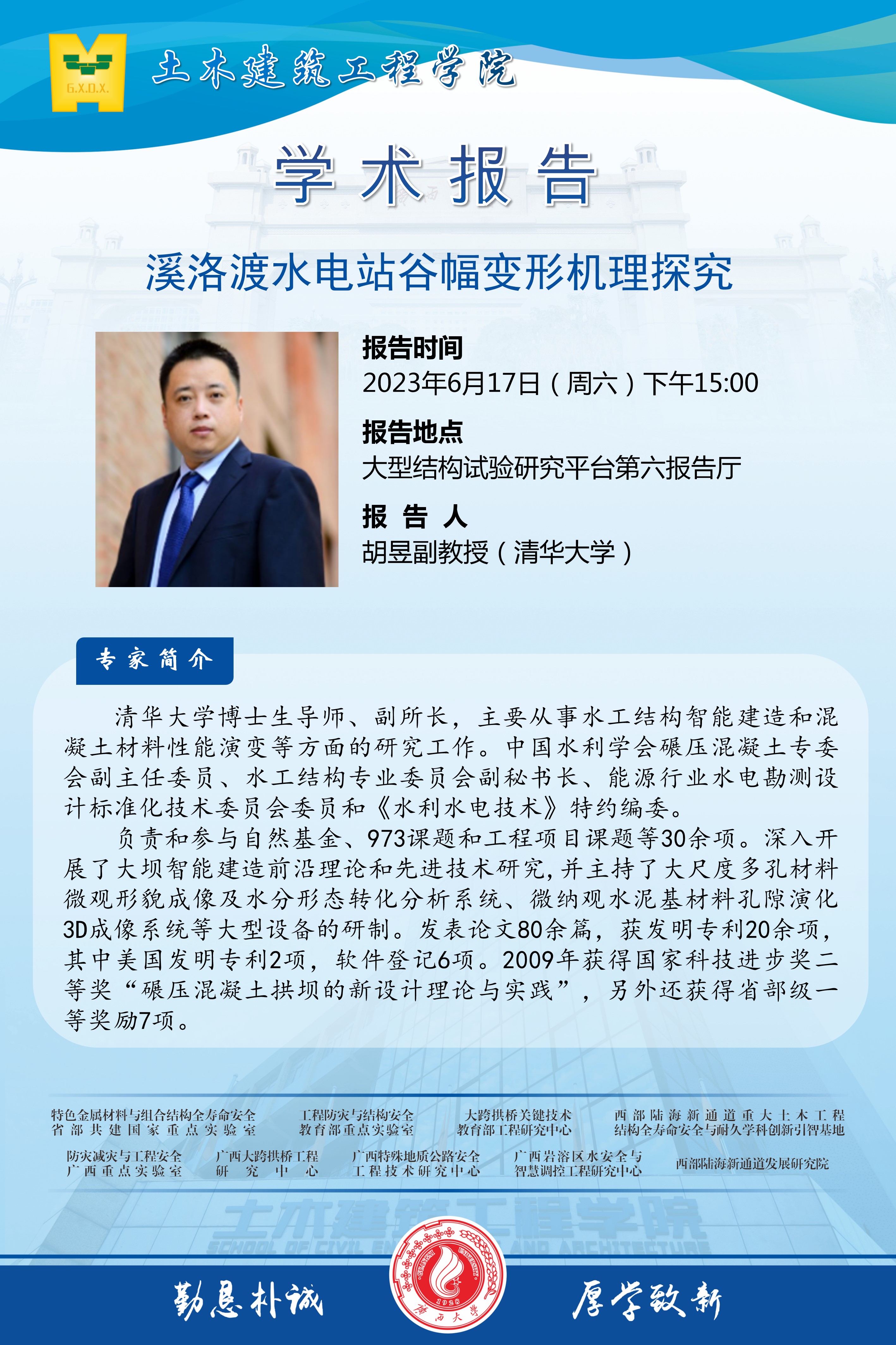 土木建筑工程学院学术报告:溪洛渡水电站谷幅变形机理探究