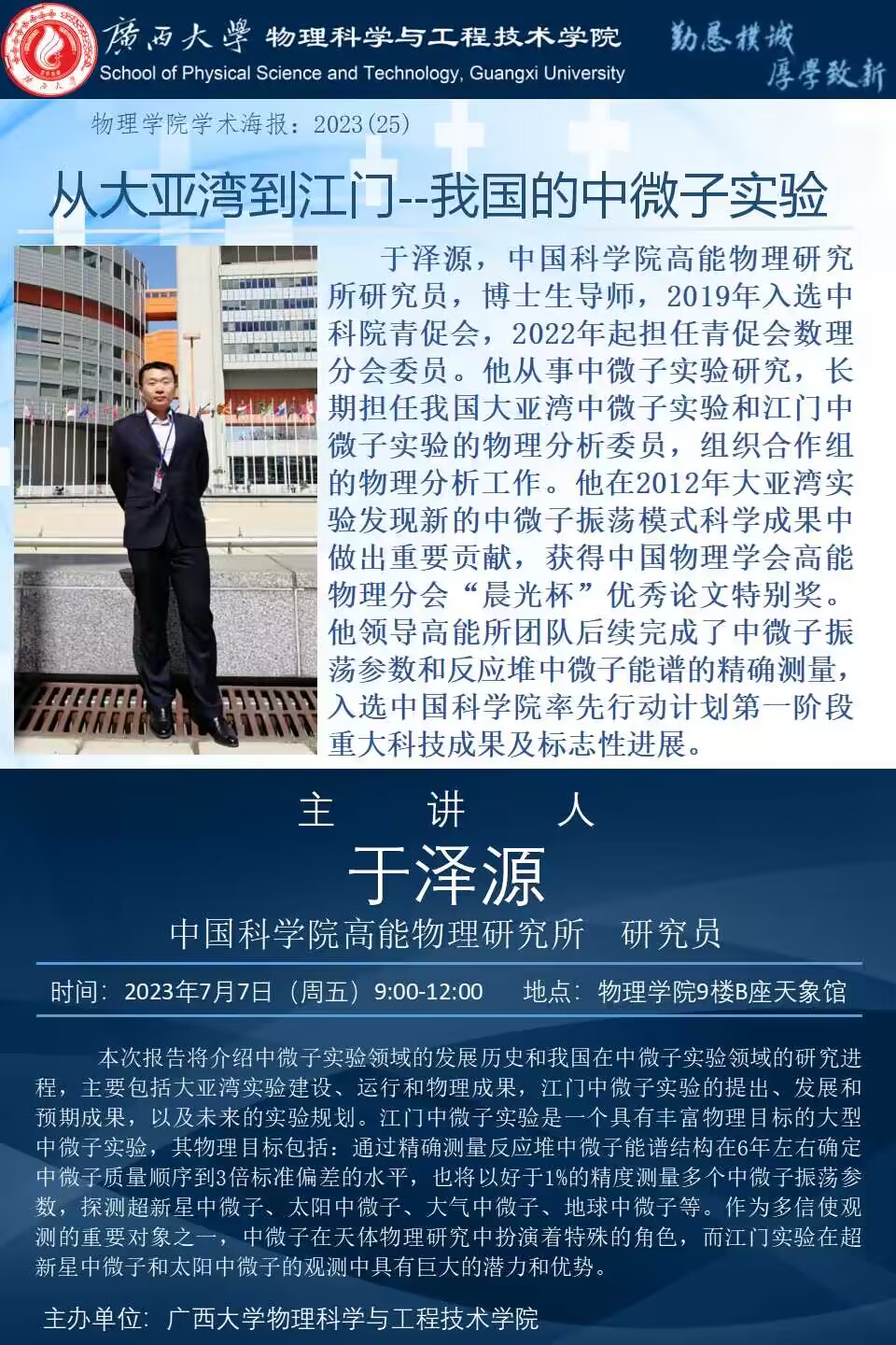 物理学院2023年学术报告系列之25:从大亚湾到江门--我国的中微子实验