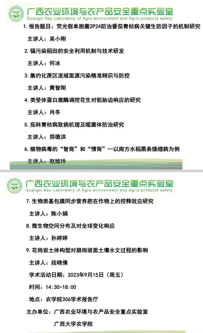 广西农业环境与农产品安全重点实验室学术交流会