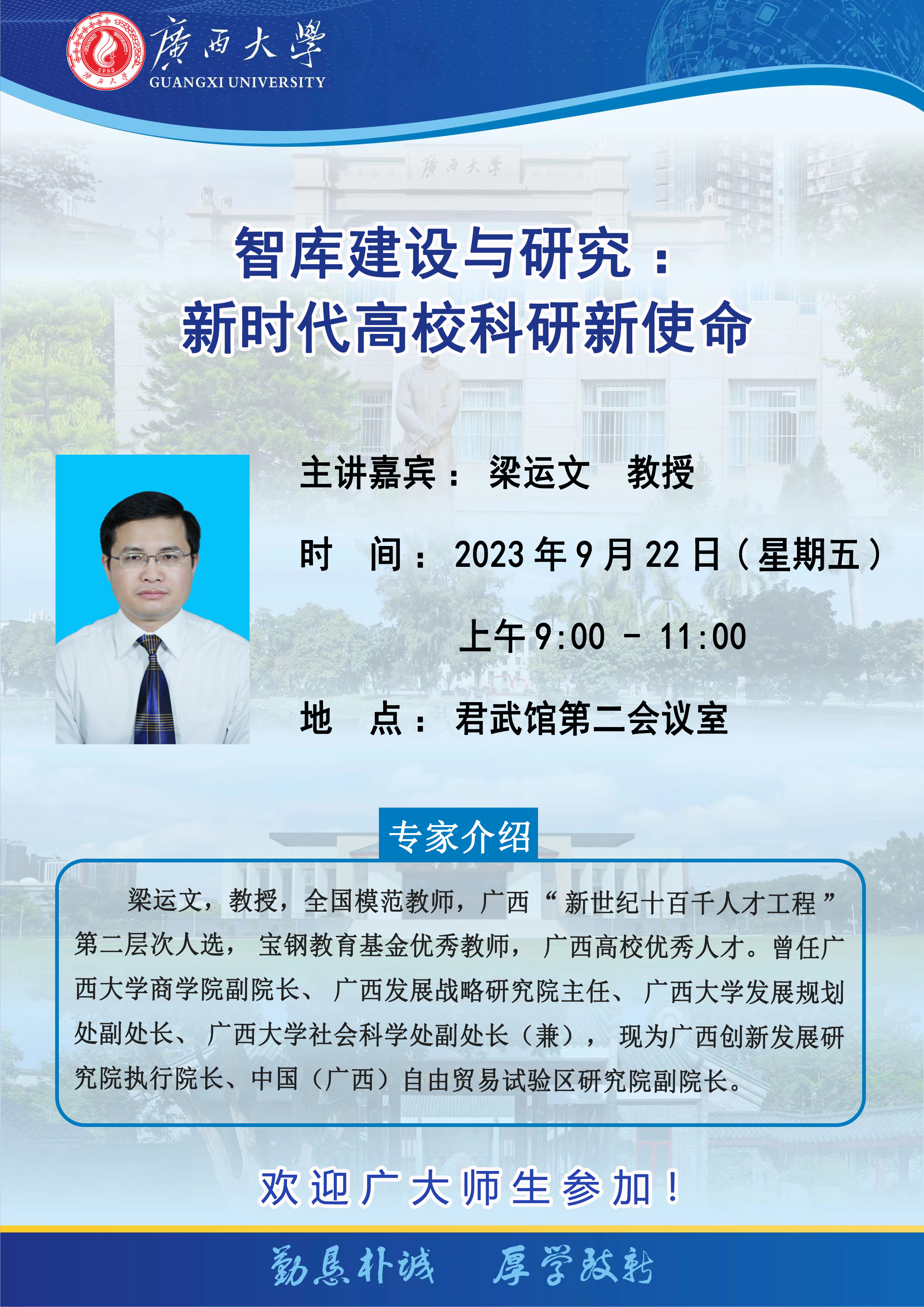 梁运文,教授,全国模范教师,广西“新世纪十百千人才工程”第二层次人选,宝钢教育基金优秀教师,广西高校优秀人才。曾任米兰电竞,洞察赛局趋势,定义电竞美学商学院副院长、广西发展战略研究院主任、米兰电竞,洞察赛局趋势,定义电竞美学发展规划处副处长、米兰电竞,洞察赛局趋势,定义电竞美学社会科学处副处长(兼),现为广西创新发展研究院执行院长、中国(广西)自由贸易试验区研究院副院长。