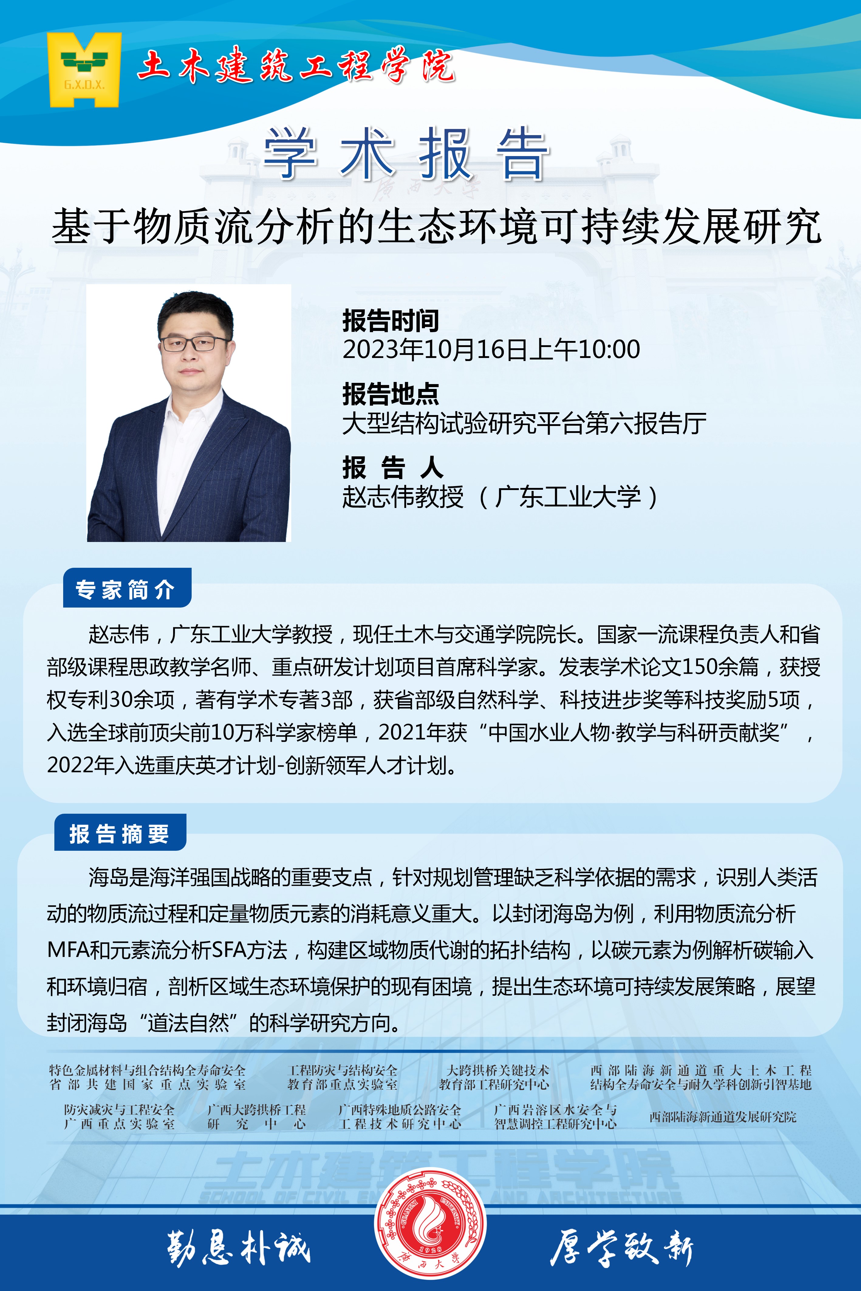 土木建筑工程学院学术报告:基于物质流分析的生态环境可持续发展研究