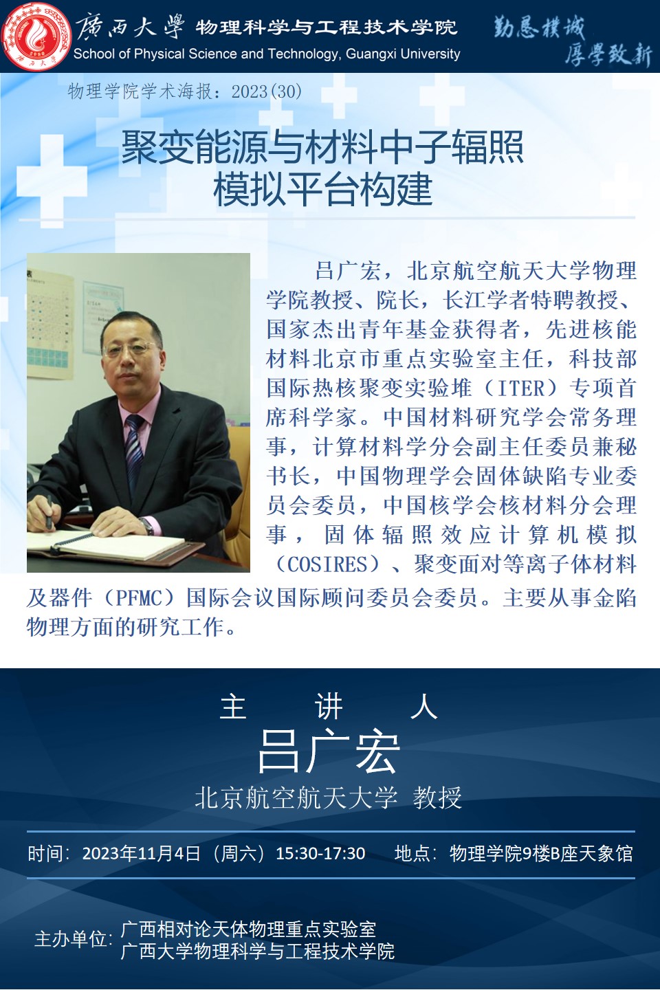 物理学院2023年学术报告系列之30:聚变能源与材料中子辐照模拟平台构建