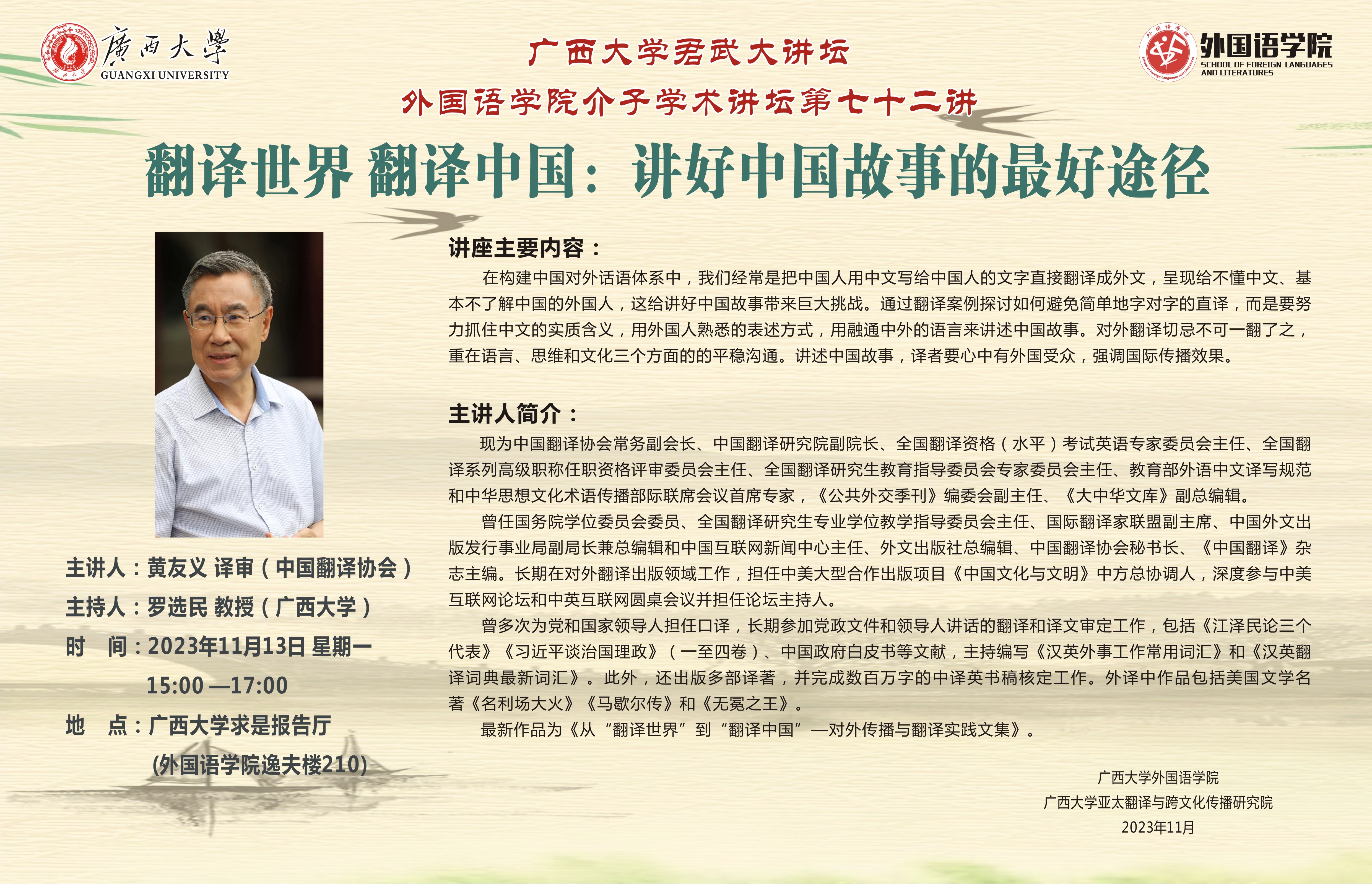 米兰电竞,洞察赛局趋势,定义电竞美学君武大讲坛/外国语学院介子学术讲坛第七十二讲:翻译世界 翻译中国——讲好中国故事的最好途径
