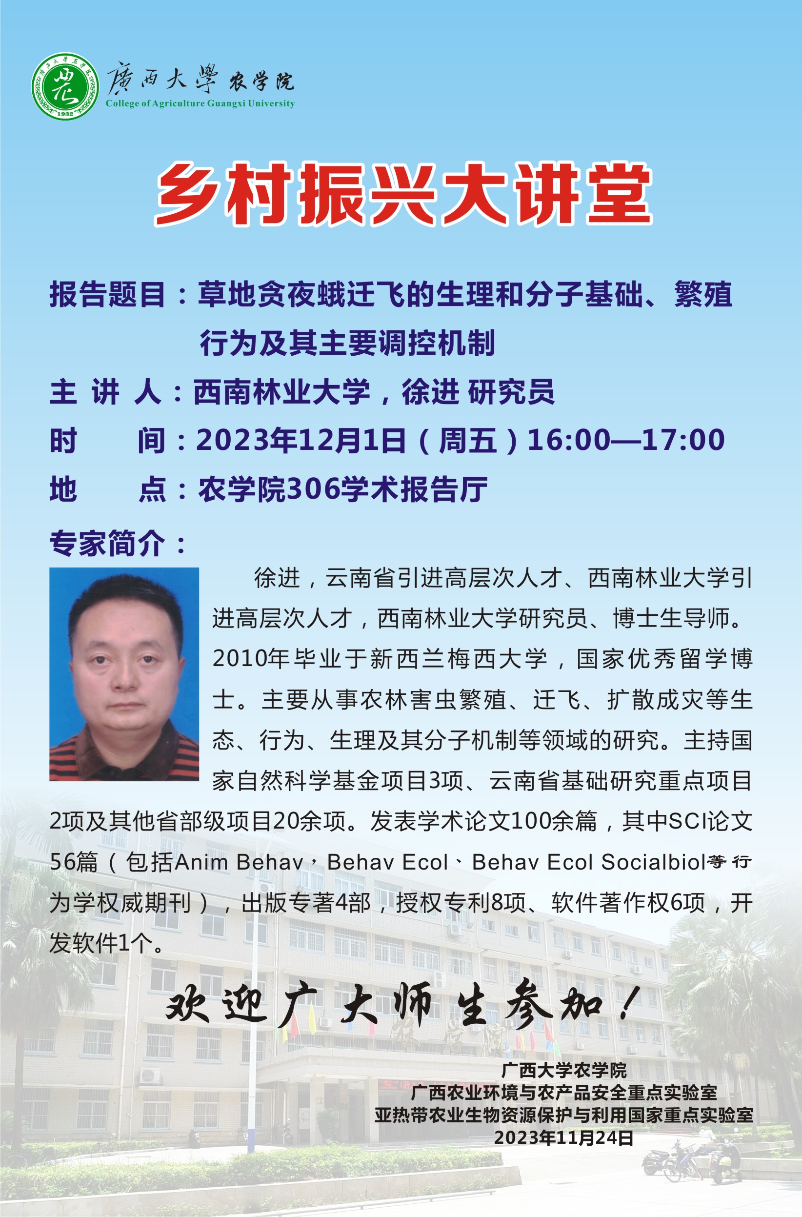 乡村振兴大讲堂:草地贪夜蛾迁飞的生理和分子基础、繁殖行为及其主要调控机制
