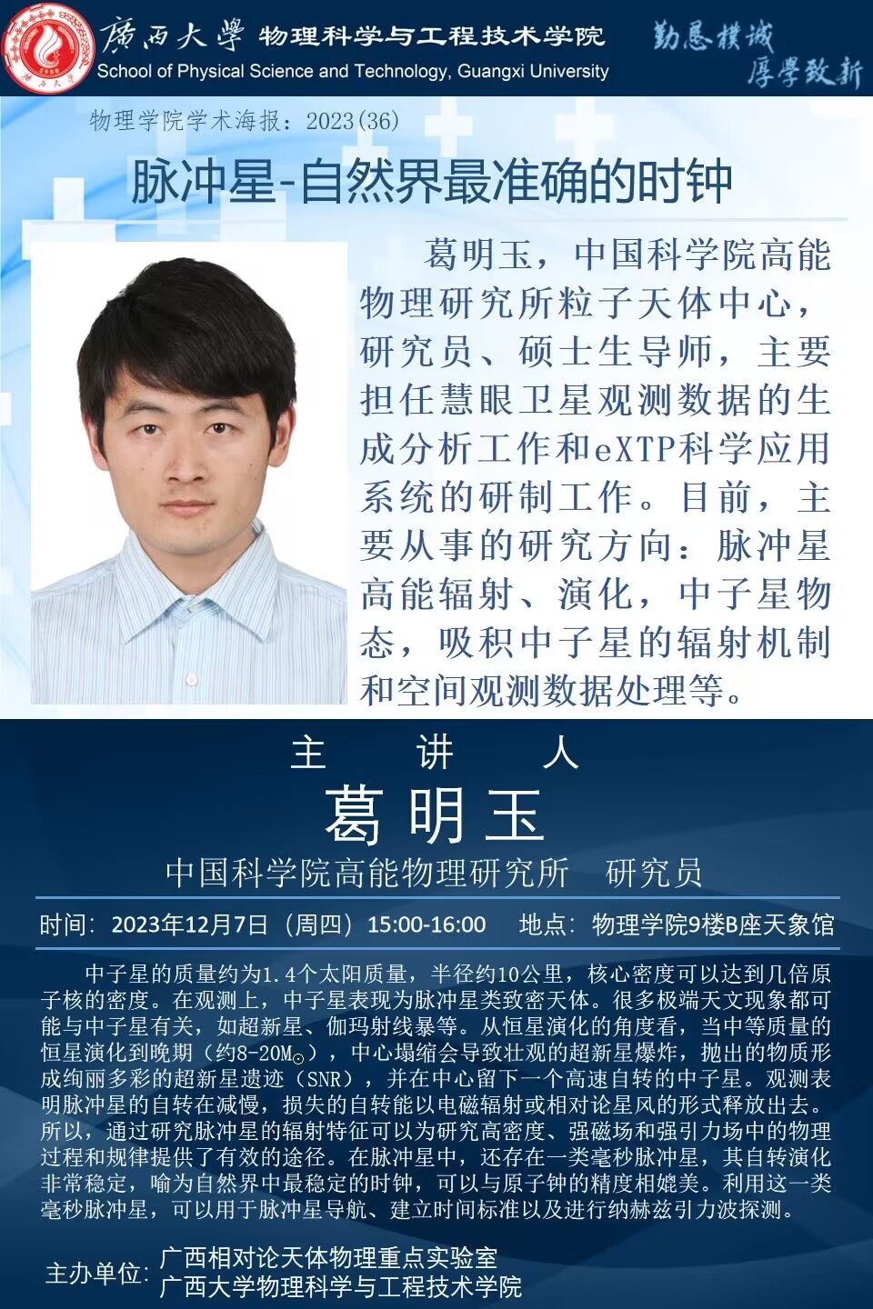 物理学院2023年学术报告系列之36:脉冲星-自然界最准确的时钟