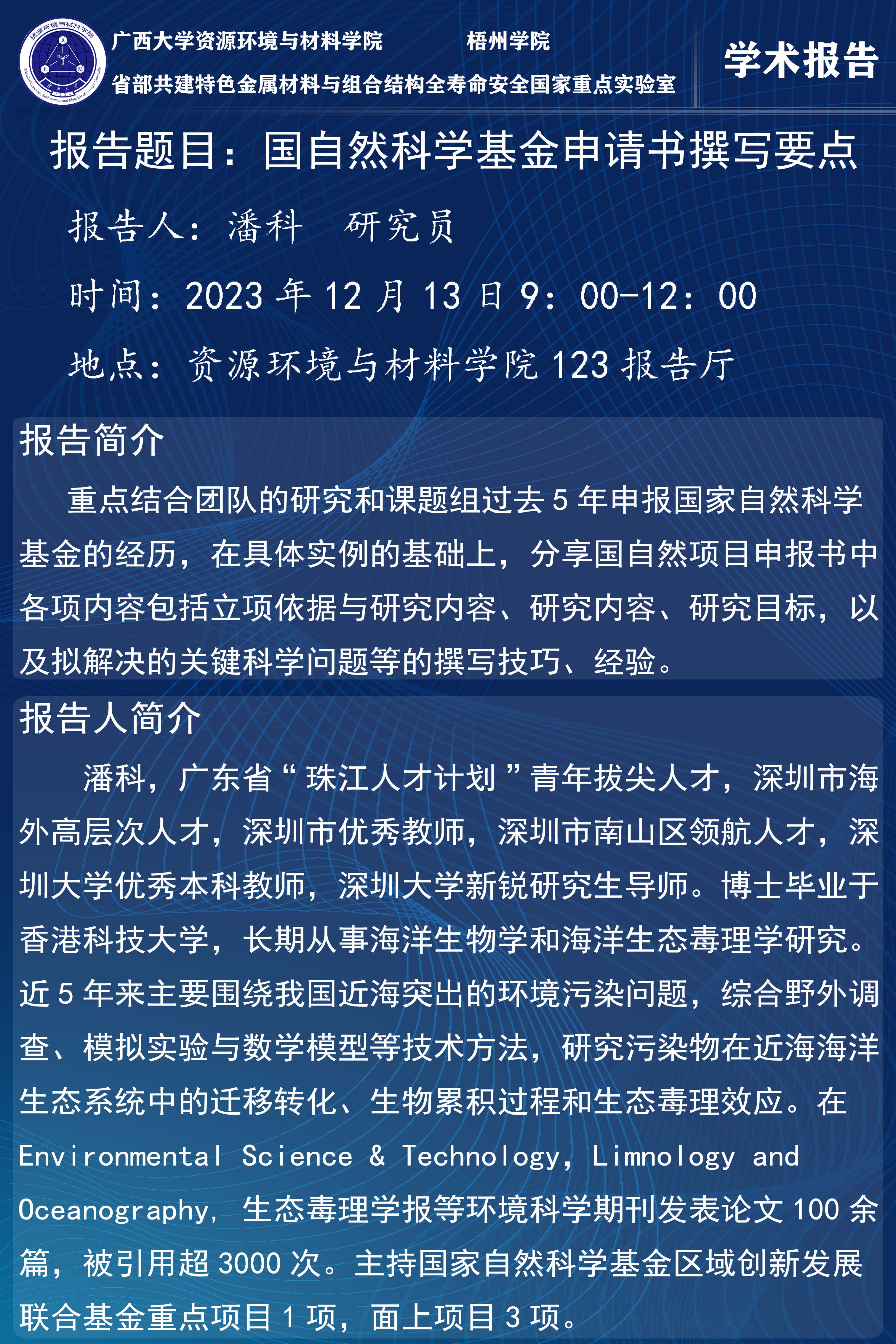 资源环境与材料学院学术报告:国自然科学基金申请书撰写要点