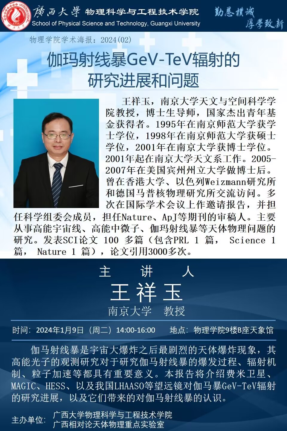 下一条:物理学院2024年学术报告之01:海外名师大讲堂——Looking forward to the future of gamma-ray astronomy