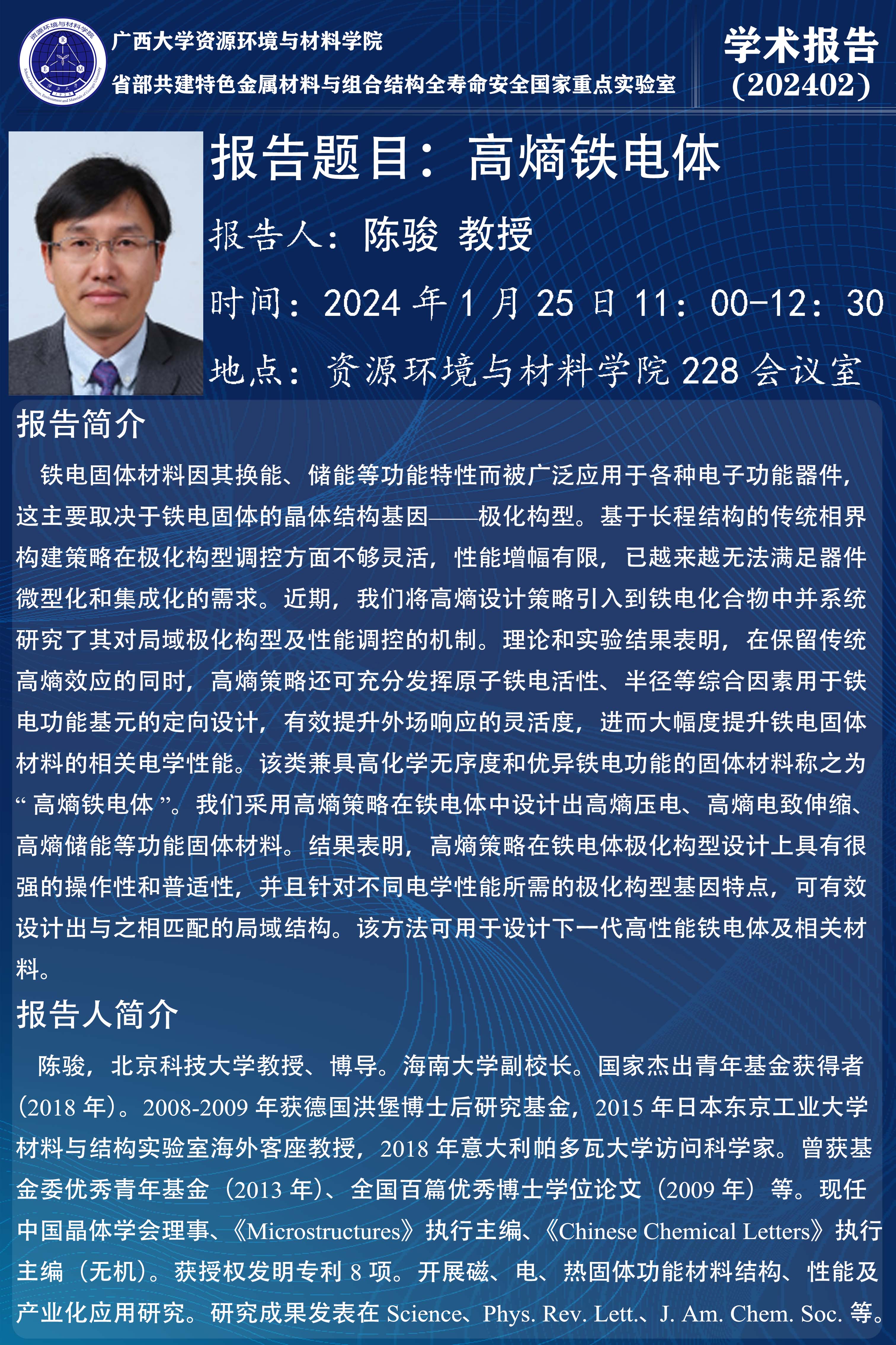 资源环境与材料学院学术报告:高熵铁电体