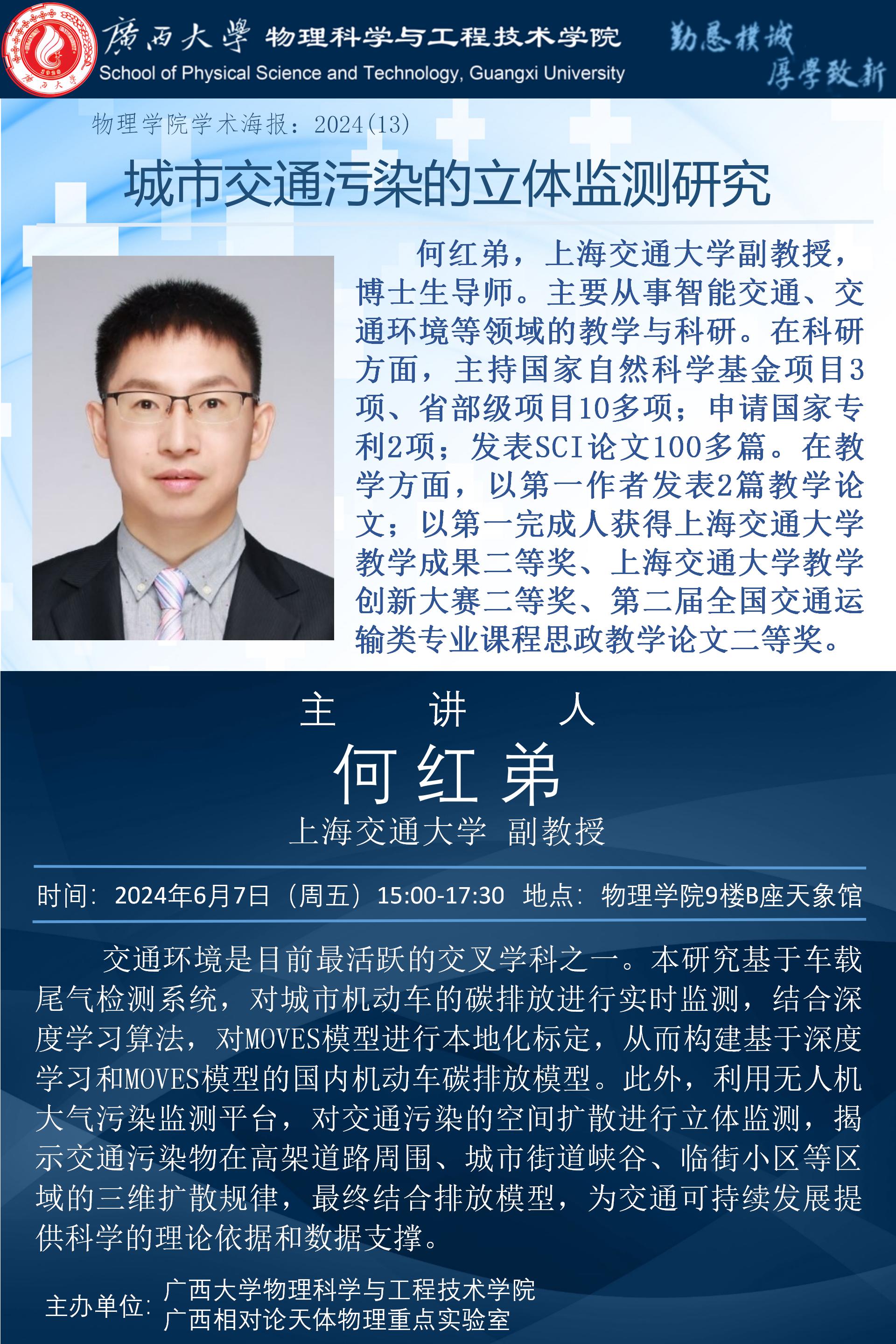 物理学院2024年学术报告之13:城市交通污染的立体监测研究