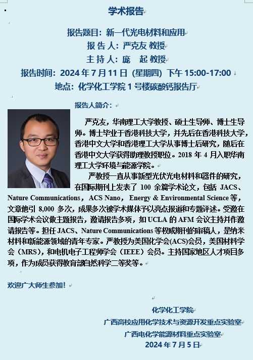 化学化工学院学术报告:新一代光电材料和应用