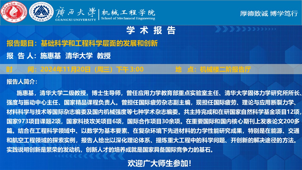 机械工程学院学术报告:基础科学和工程科学层面的发展和创新