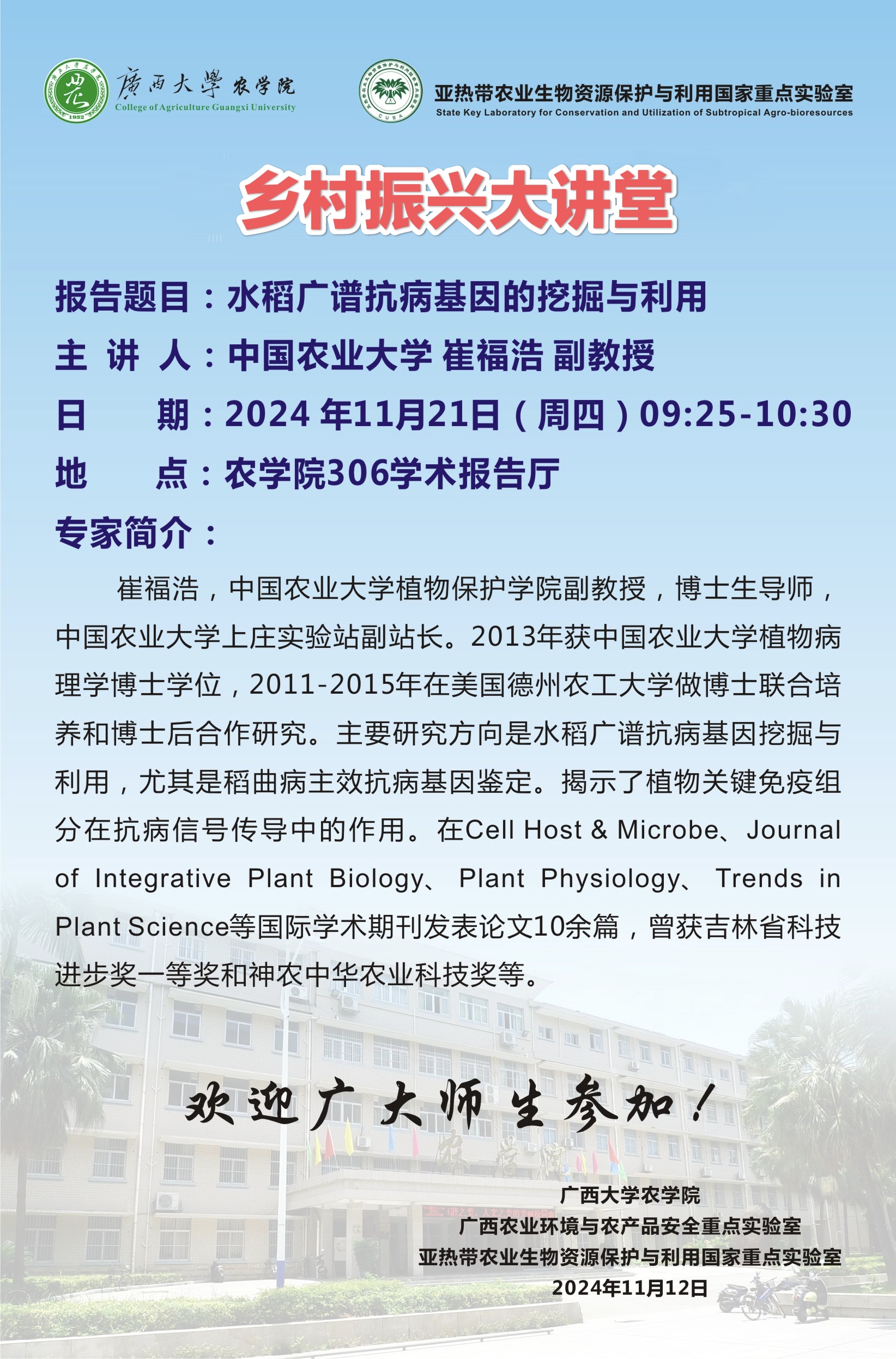 乡村振兴大讲堂:水稻广谱抗病基因的挖掘与利用