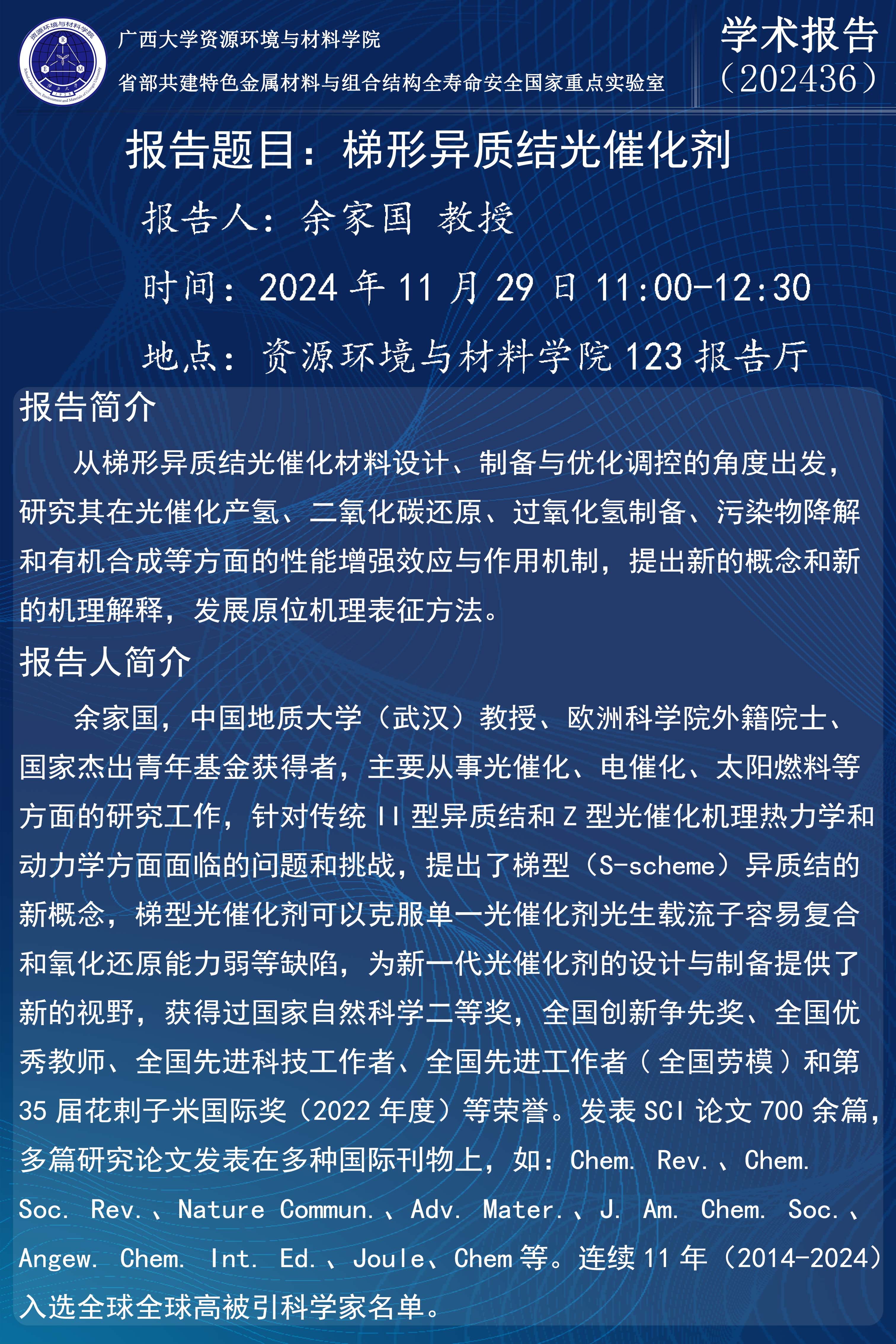 资源环境与材料学院学术报告:梯形异质结光催化剂