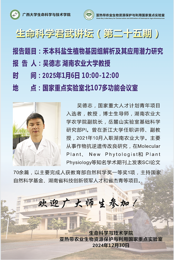 生命科学君武讲坛(第二十五期):禾本科盐生植物基因组解析及其应用潜力研究