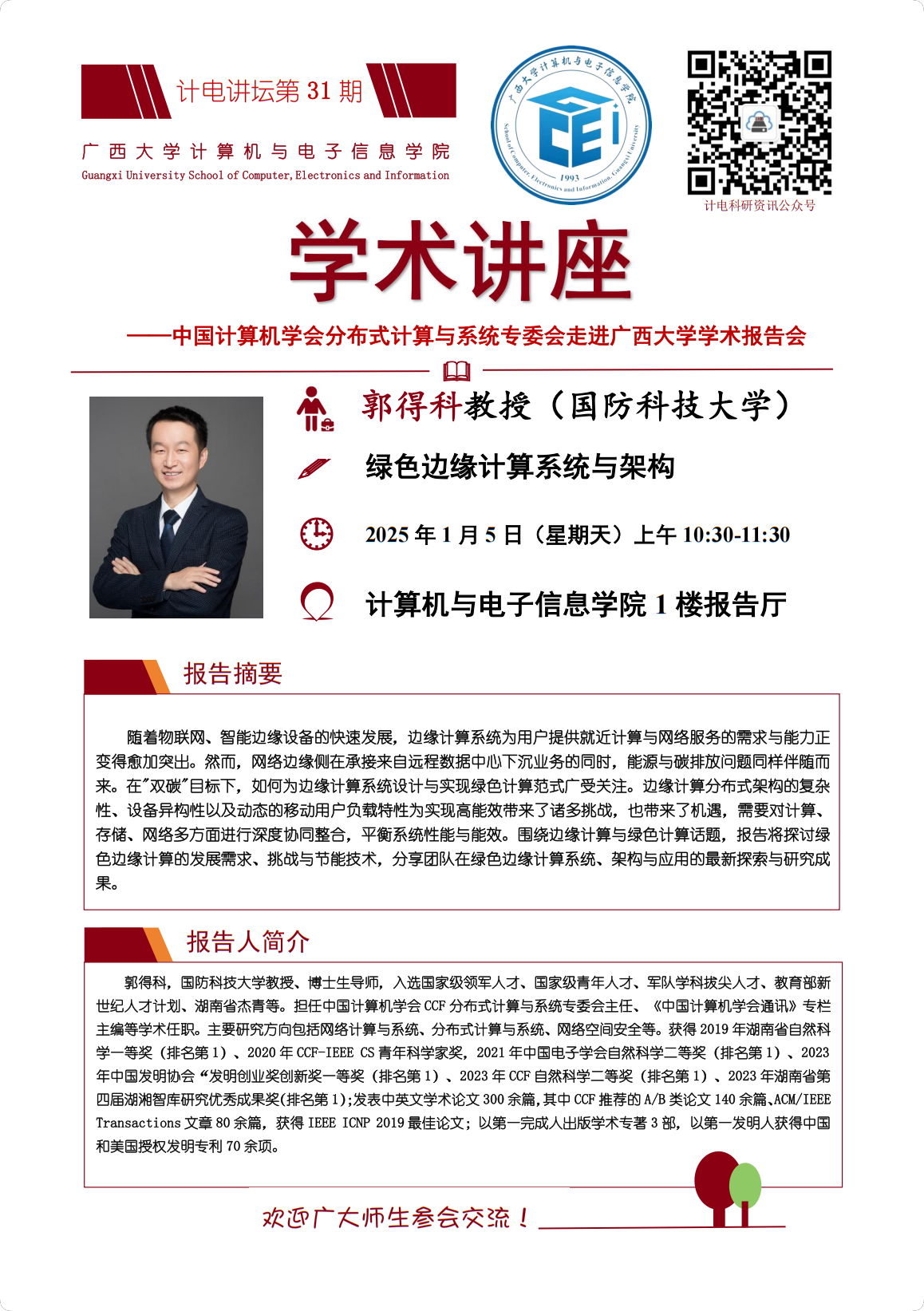 “计电讲坛”系列活动第31期——中国计算机学会分布式计算与系统专委会走进米兰电竞,洞察赛局趋势,定义电竞美学学术报告会:绿色边缘计算系统与架构
