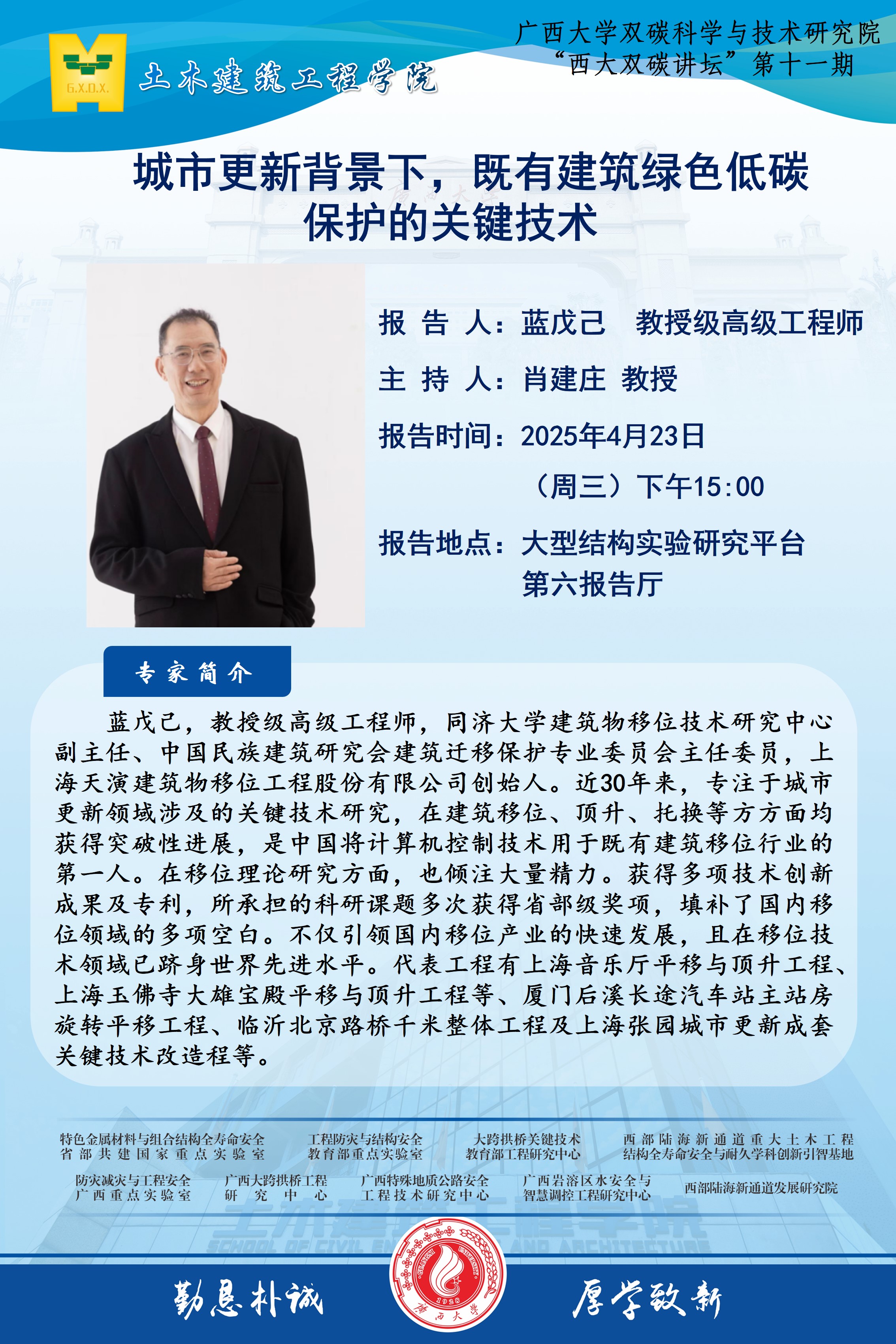 土木建筑工程学院、双碳科学与技术研究院学术报告:城市更新背景下,既有建筑绿色低碳保护的关键技术